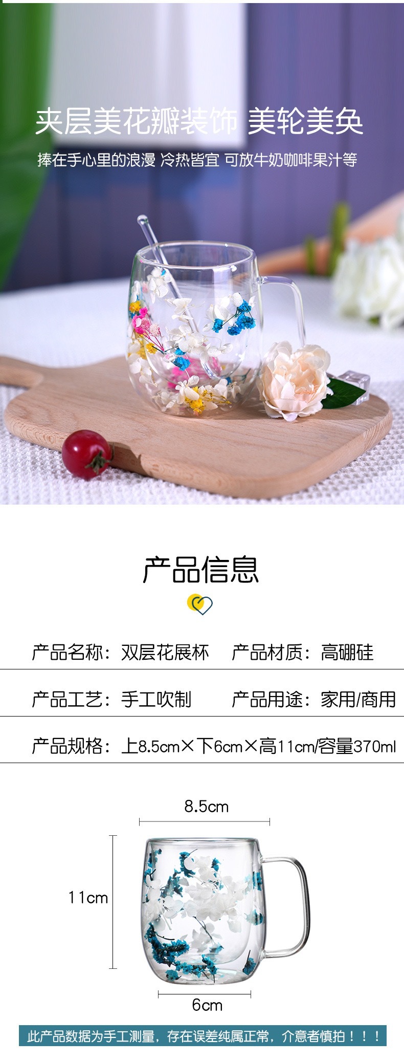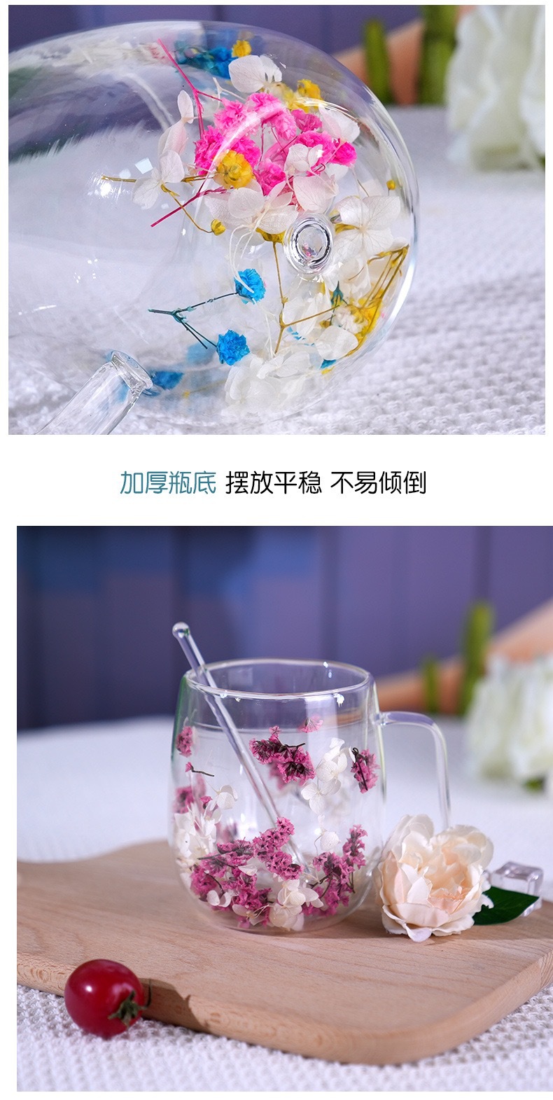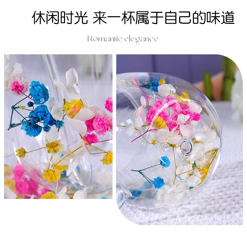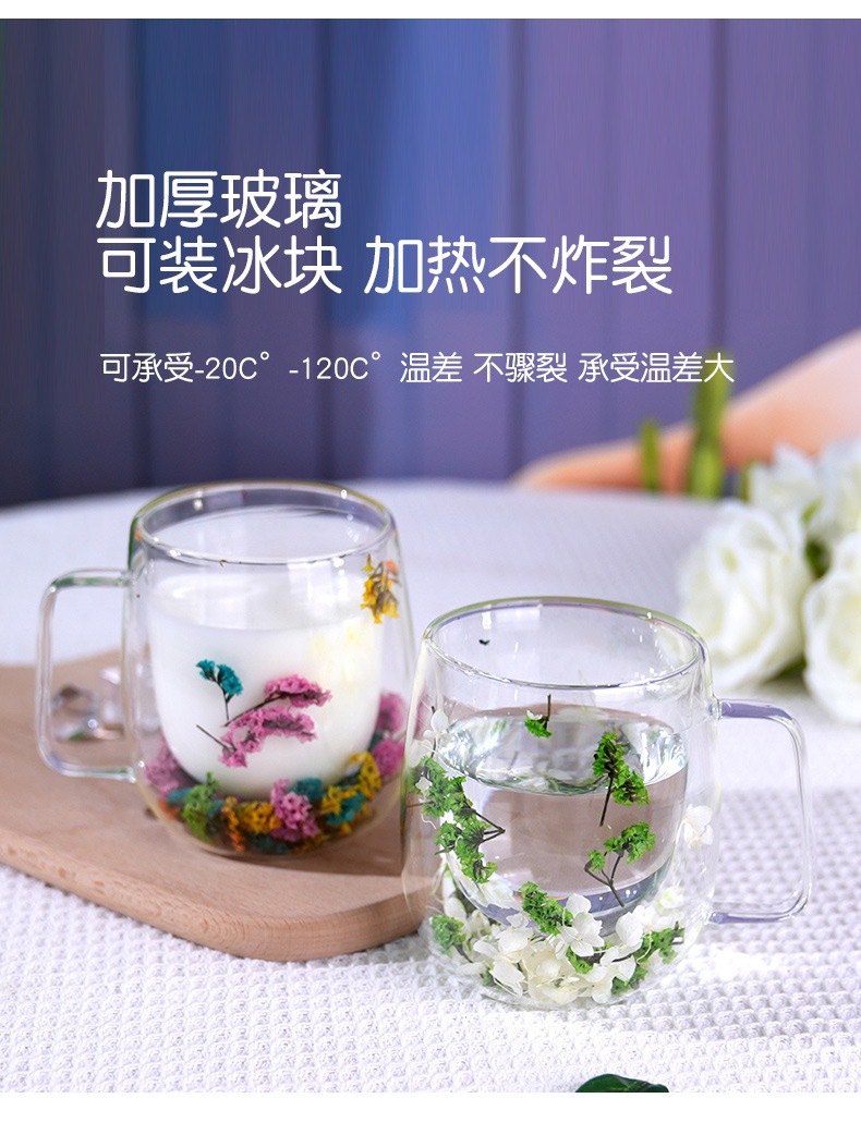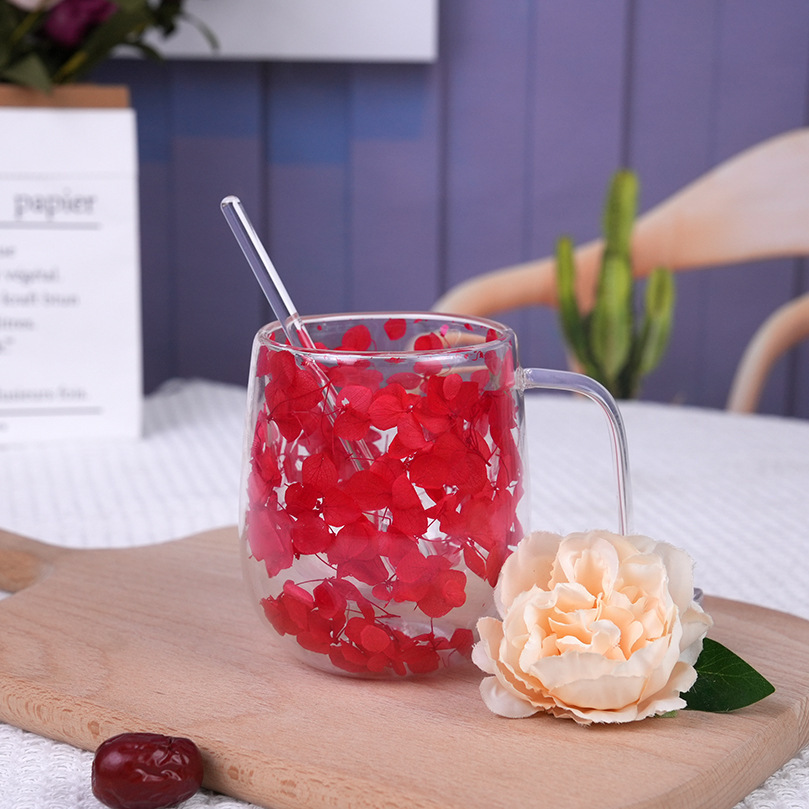 국경 간 도매 이중층 리얼 플라워 유리컵 ins 스타일 기념품 주스컵 가정용 고급 꽃잎 모래시계컵
