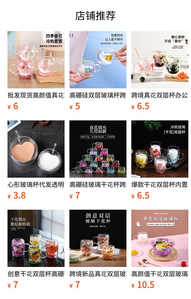 국경 간 도매 이중층 리얼 플라워 유리컵 ins 스타일 기념품 주스컵 가정용 고급 꽃잎 모래시계컵스토어 가기