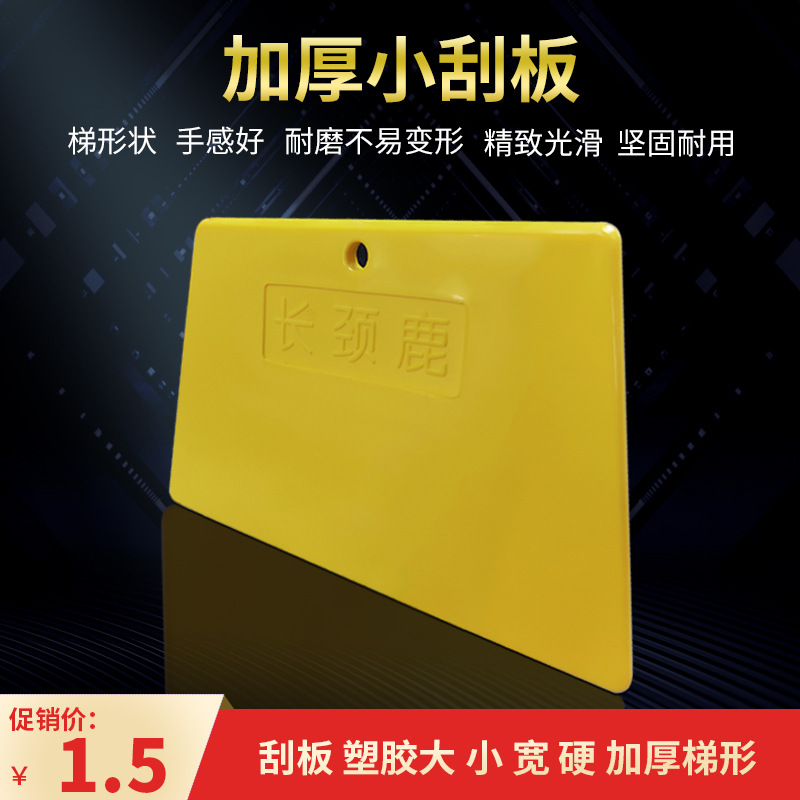 长颈鹿黄色小刮板:加厚,特硬。长边11厘米左右,厚度达到1个1元硬币的厚度;短边8厘米左右。单次购买1000个以上,可以协商批发价格。