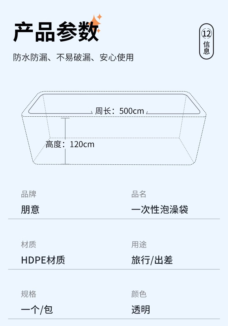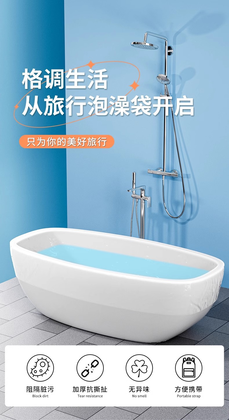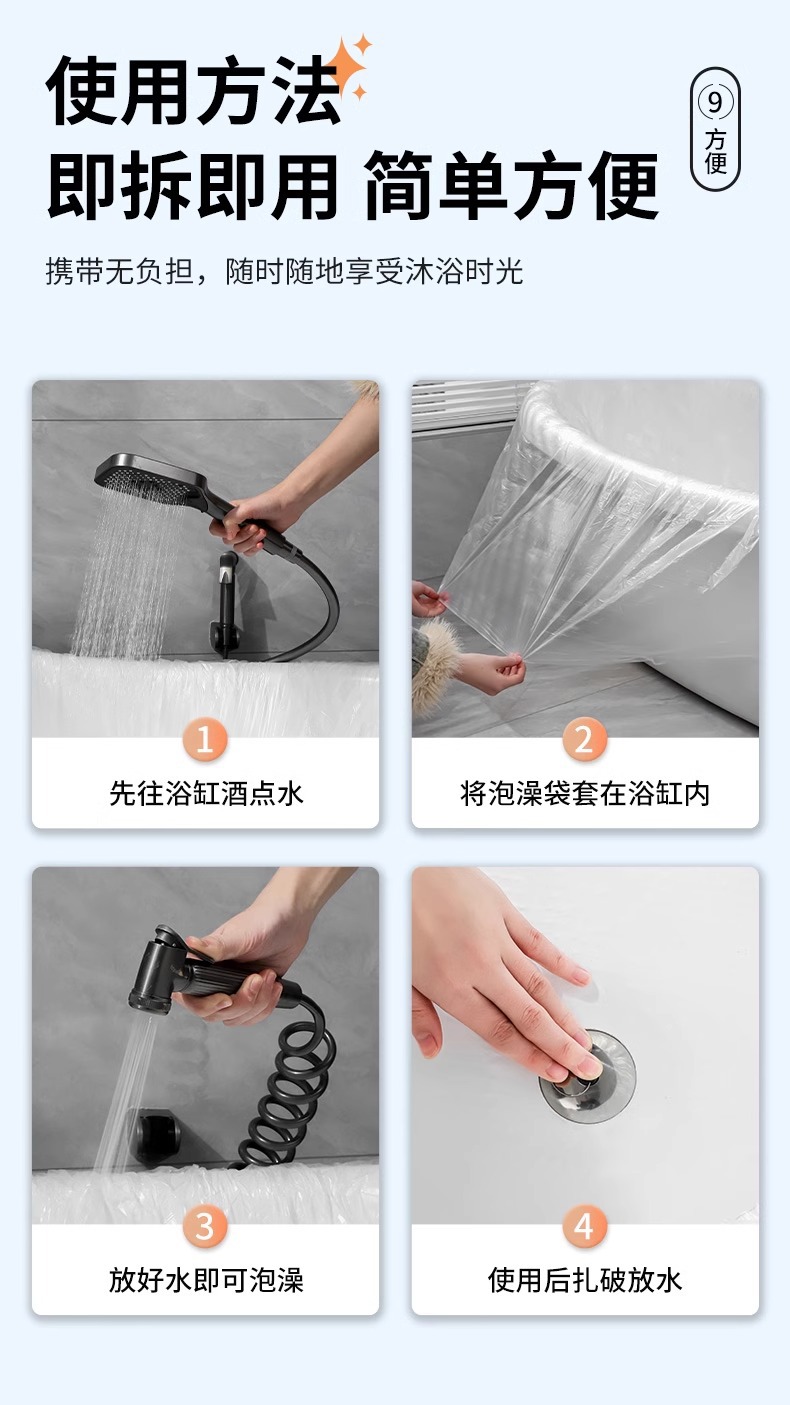 목욕 커버 10개, 여행용 호텔 일회용 목욕 가방, 두꺼운 욕조 더러운 플라스틱 필름 목욕 버킷 커버