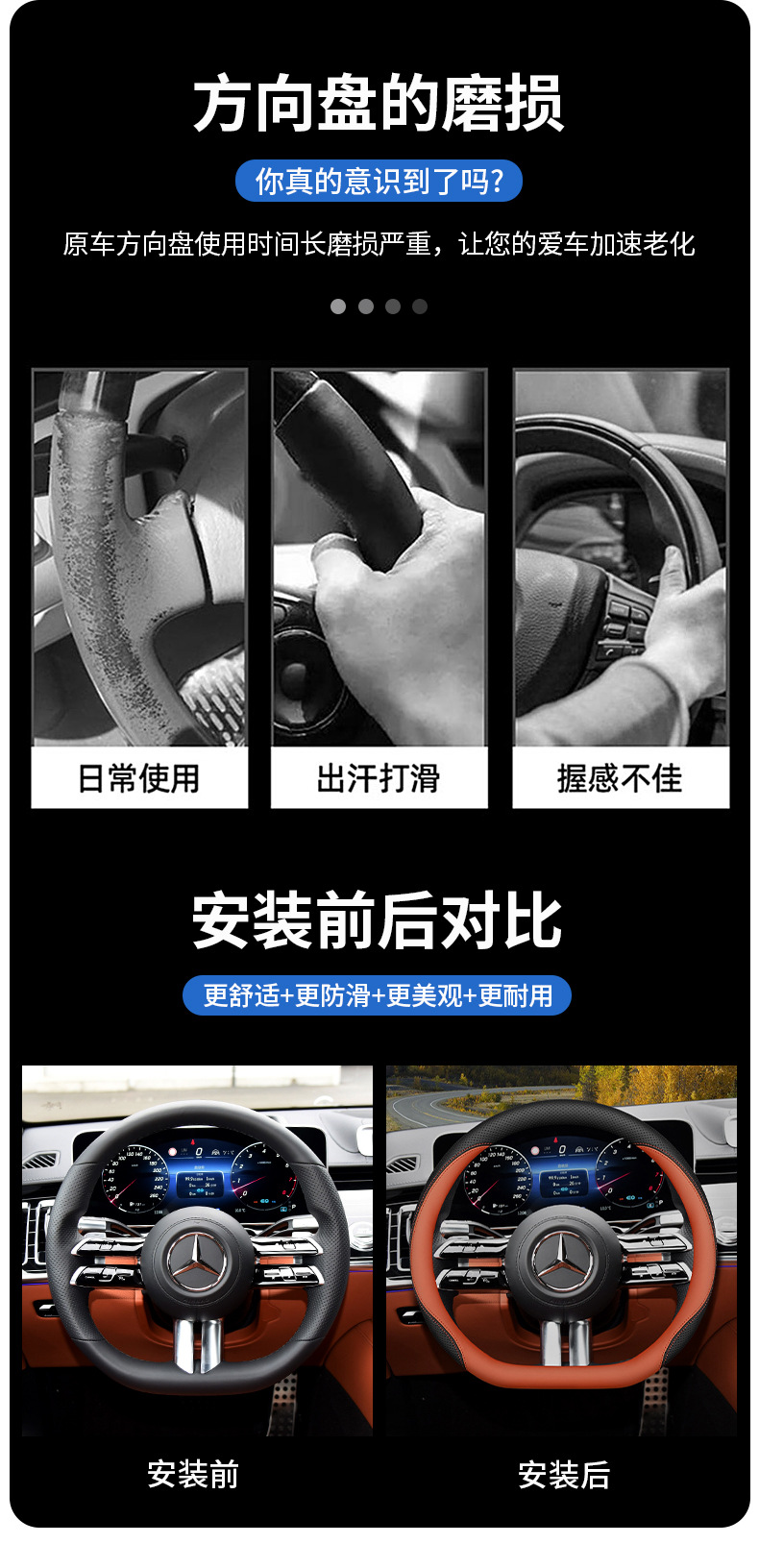 메르세데스-벤츠 스티어링 휠 커버 C260L E300L GLC300 A200 GLB220 GLA 초박형 핸들 커버 C/E 클래스스토어 가기