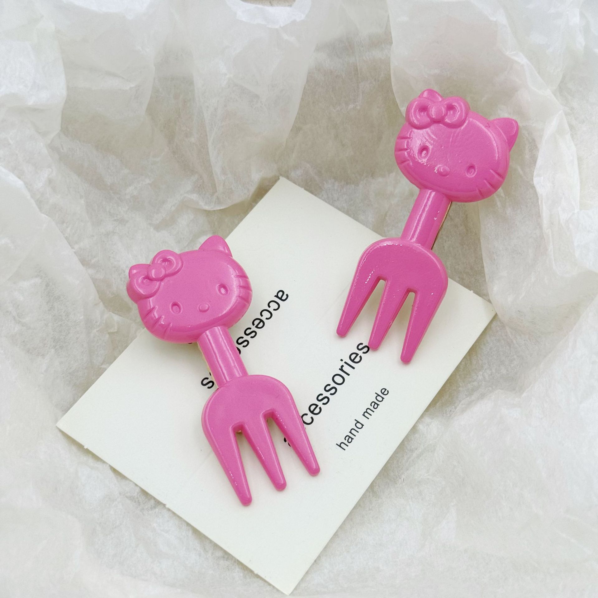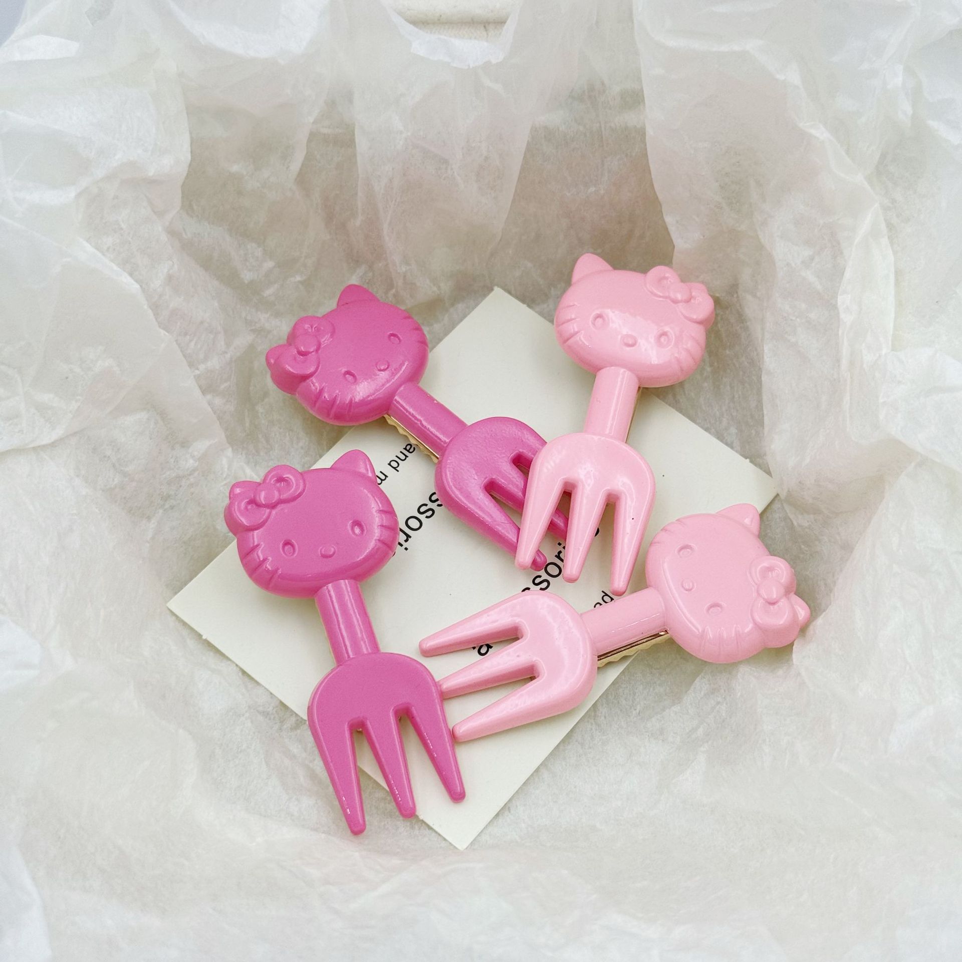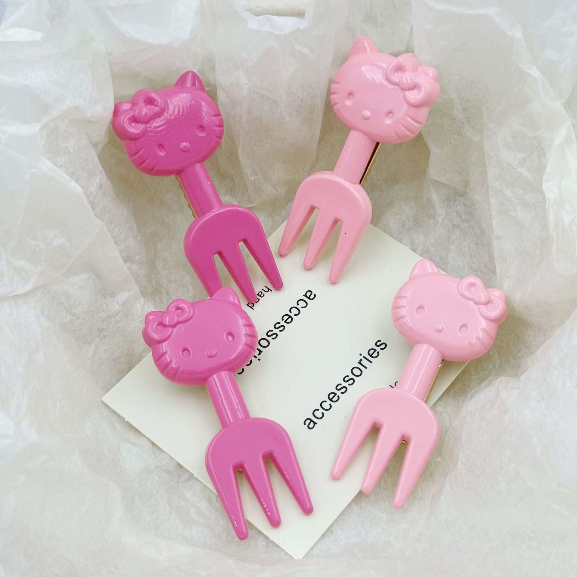 창조적 인 만화 고양이 포크 헤어핀 달콤한 귀여운 소녀 하트 뱅 클립 클립 핑크 사랑스러운 소녀 학생 헤어 액세서리