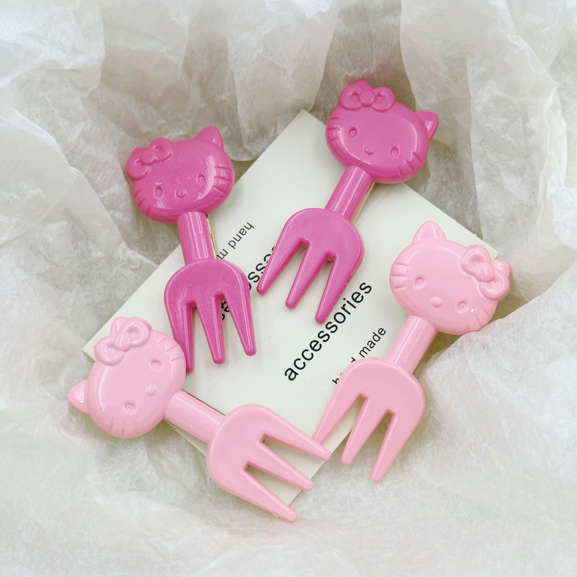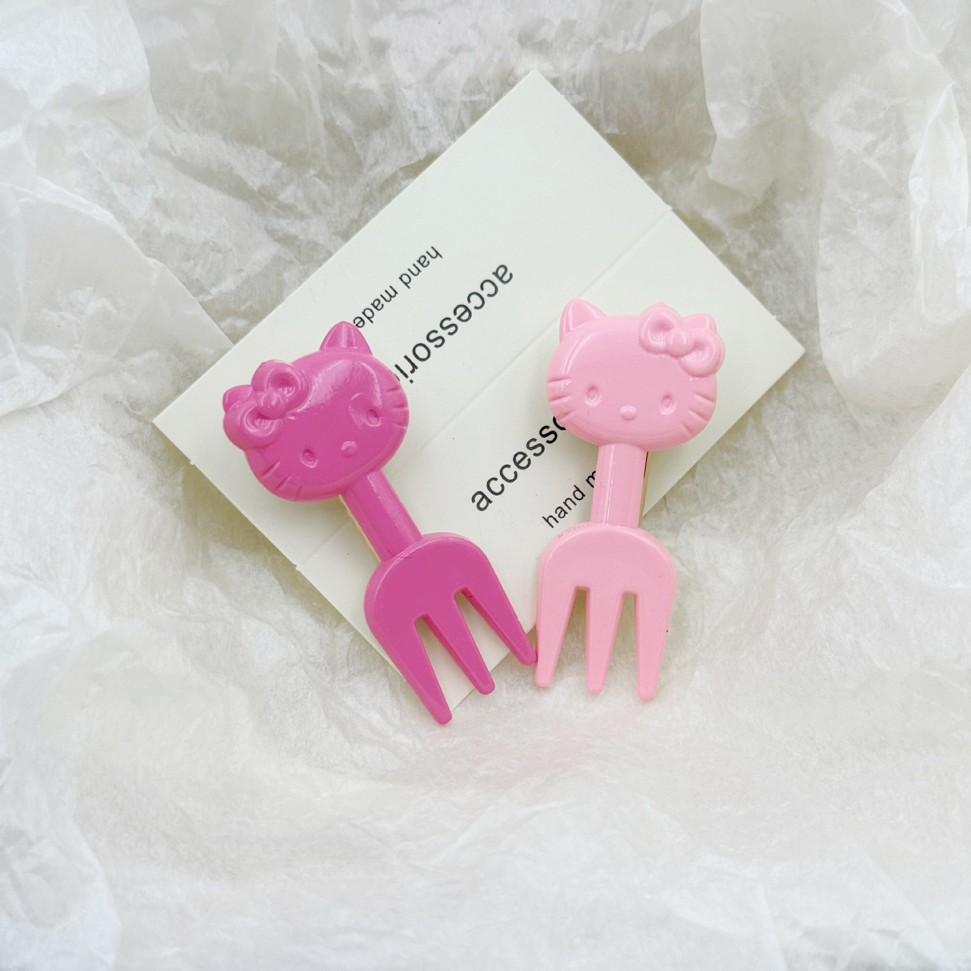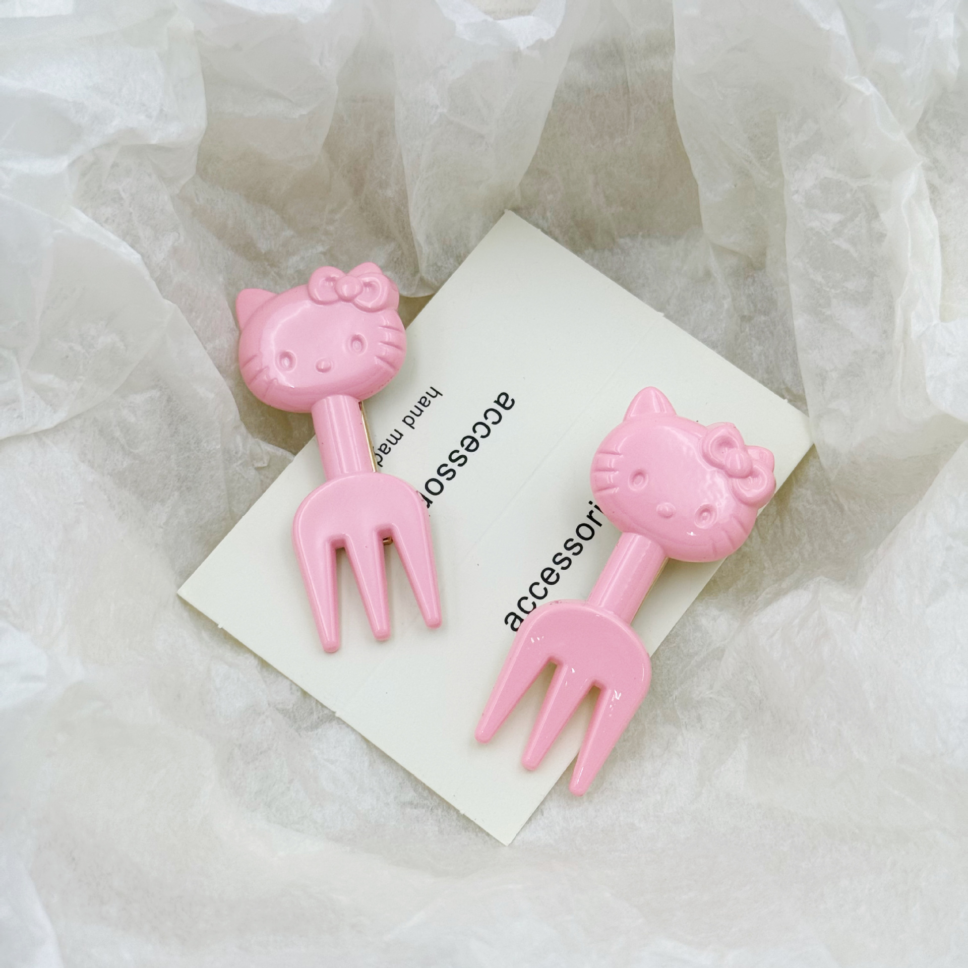 창조적 인 만화 고양이 포크 헤어핀 달콤한 귀여운 소녀 하트 뱅 클립 클립 핑크 사랑스러운 소녀 학생 헤어 액세서리