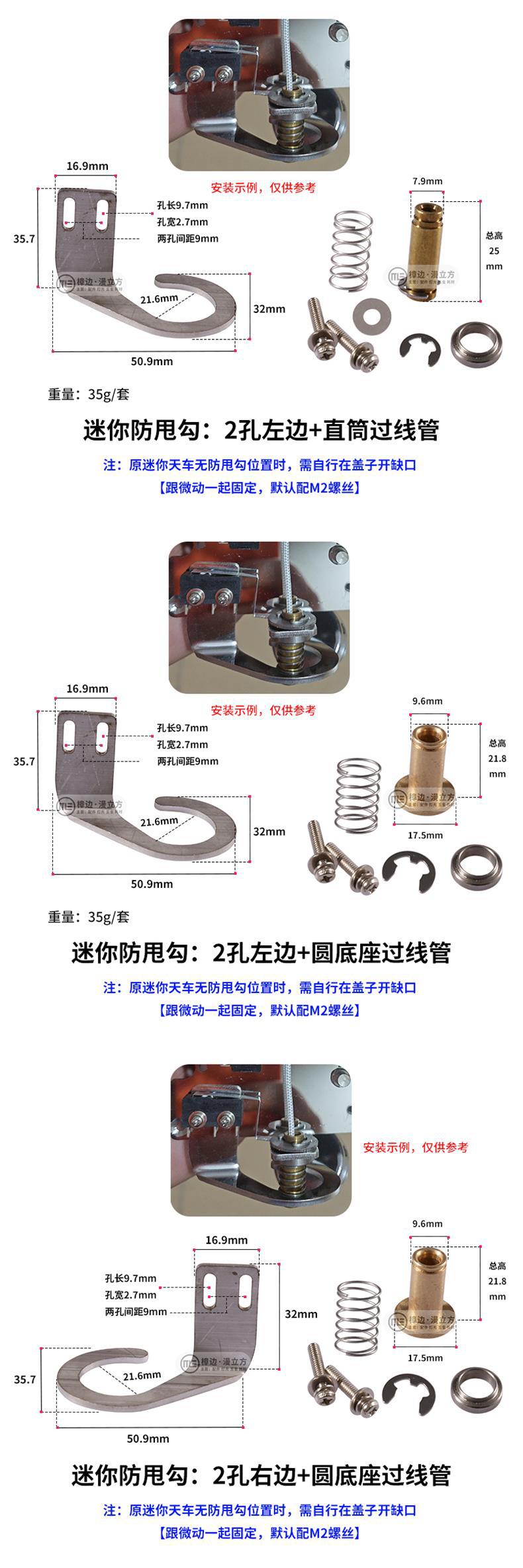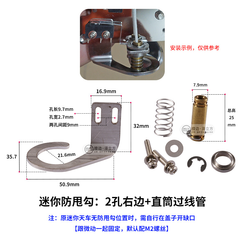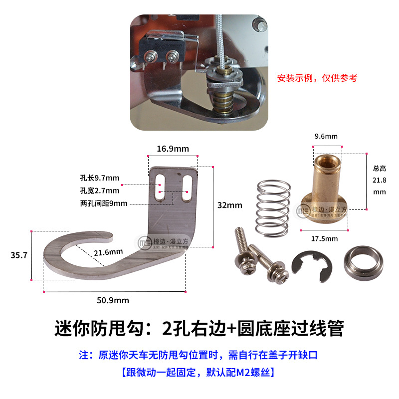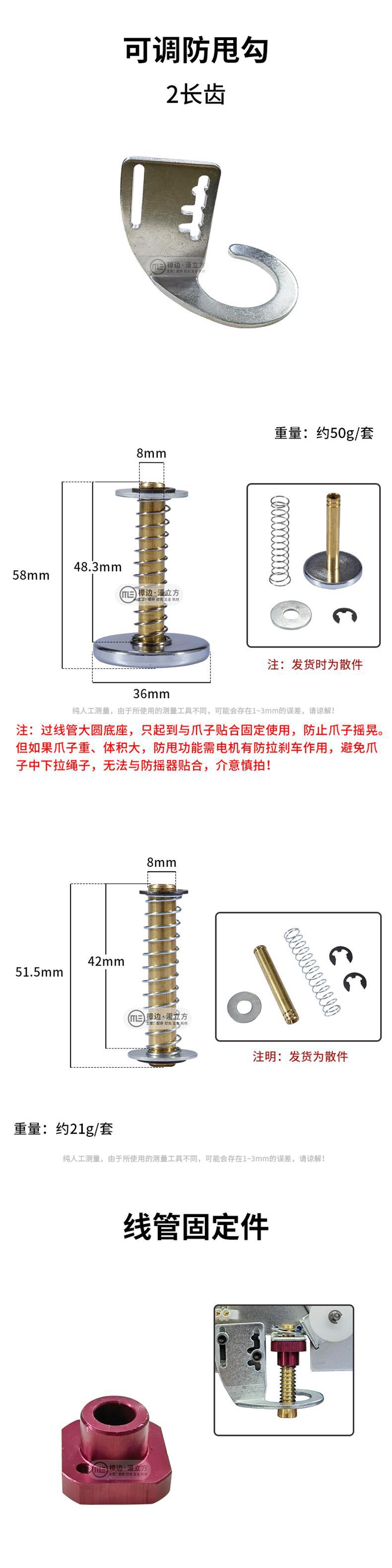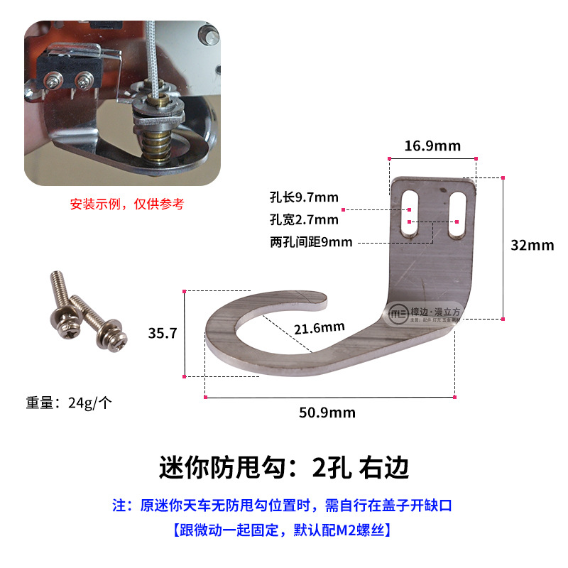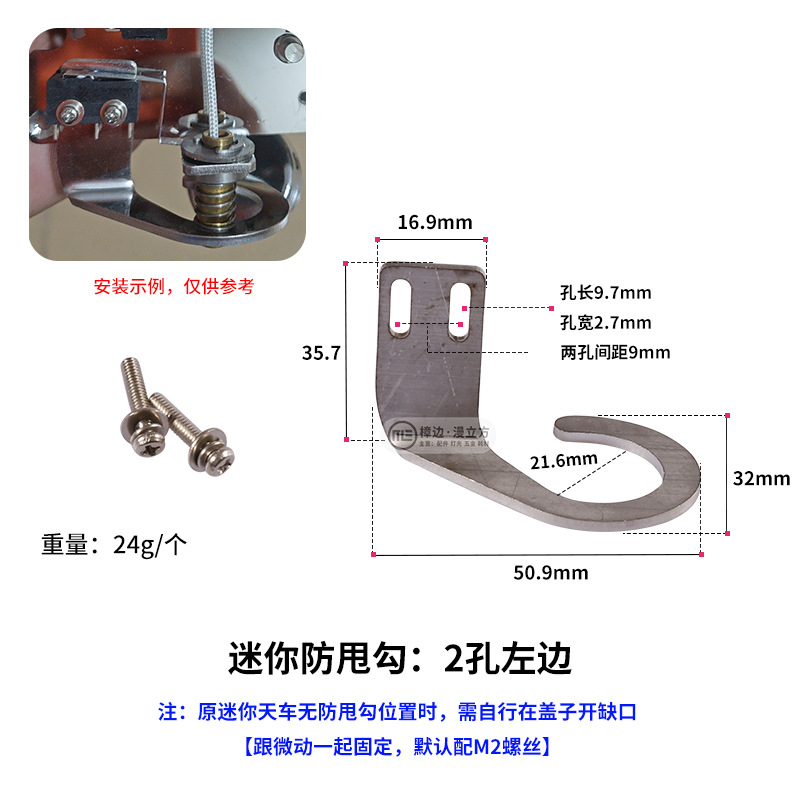 • 미니 흔들림 방지 후크: 오른쪽 구멍 2개 + 원형 베이스 와이어 통과 튜브