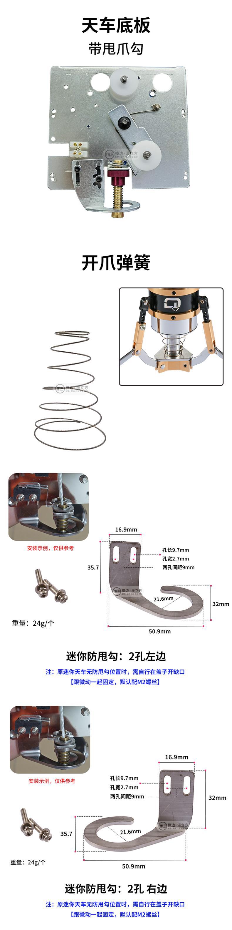 • 미니 흔들림 방지 후크: 오른쪽 구멍 2개 + M2 나사 2개