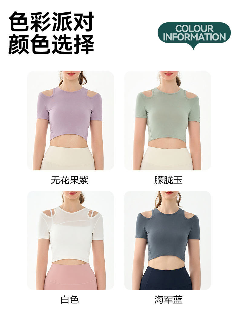 새로운 스포츠 탑 여자 어깨 할로우 요가 티셔츠 반팔 매일 올 매치 요가 옷 최고급 여름스토어 가기