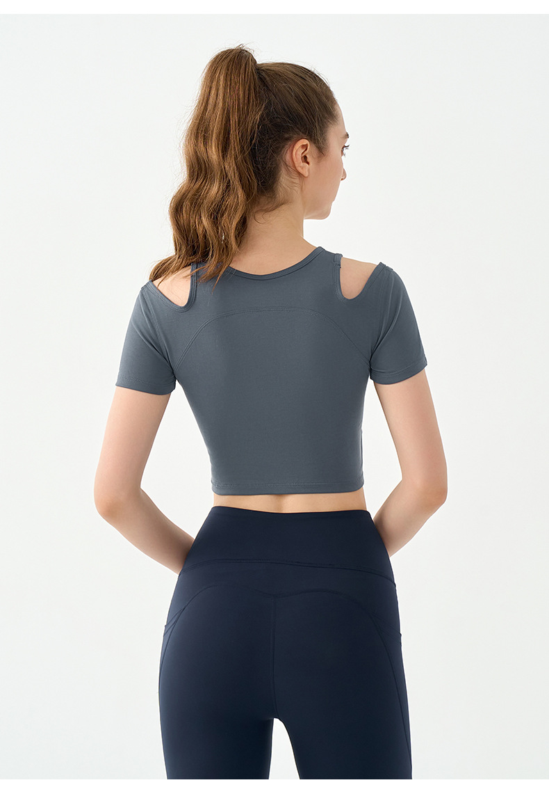 새로운 스포츠 탑 여자 어깨 할로우 요가 티셔츠 반팔 매일 올 매치 요가 옷 최고급 여름