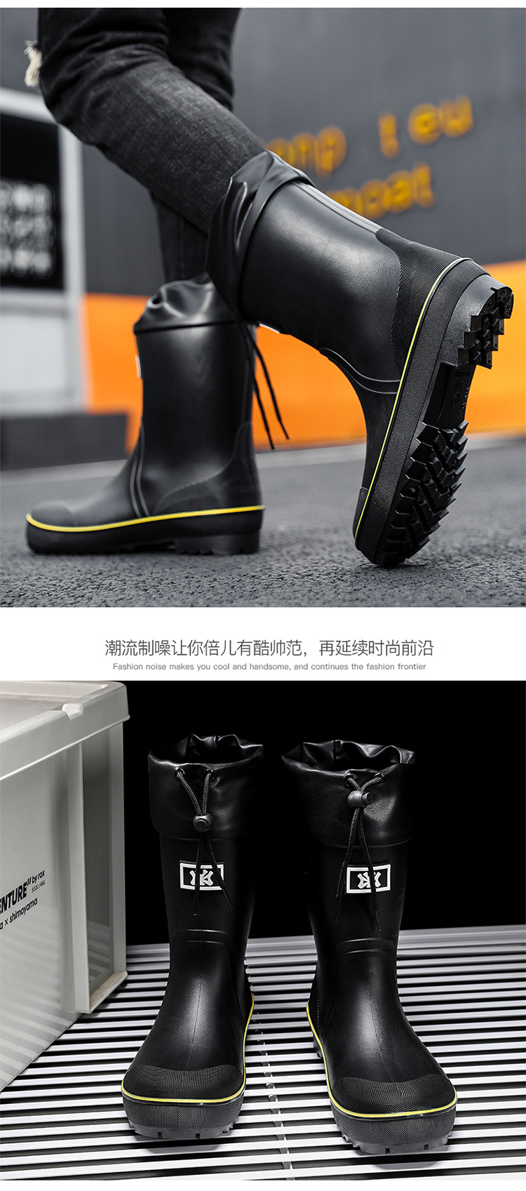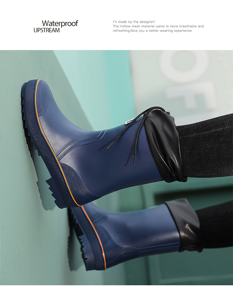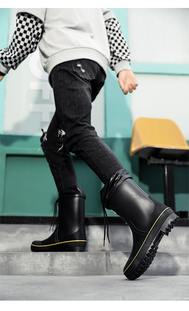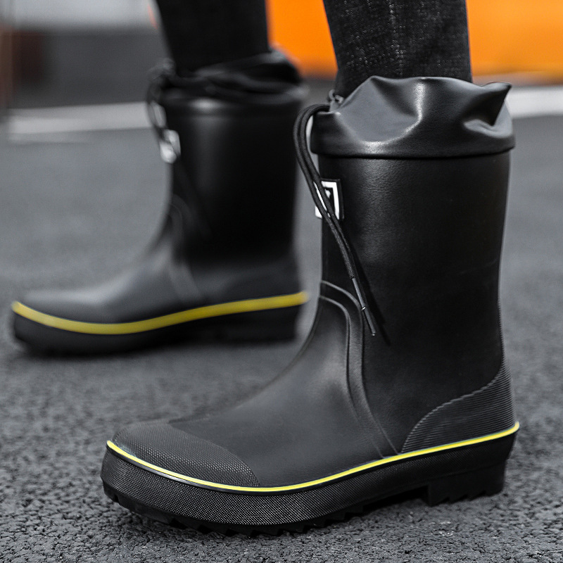 네일 업 장화 남성용 미드 튜브 미끄럼 방지 방수 신발 새로운 패션 야외 워터 부츠 따뜻한 짧은 튜브 고무 신발 남성 국경스토어 가기