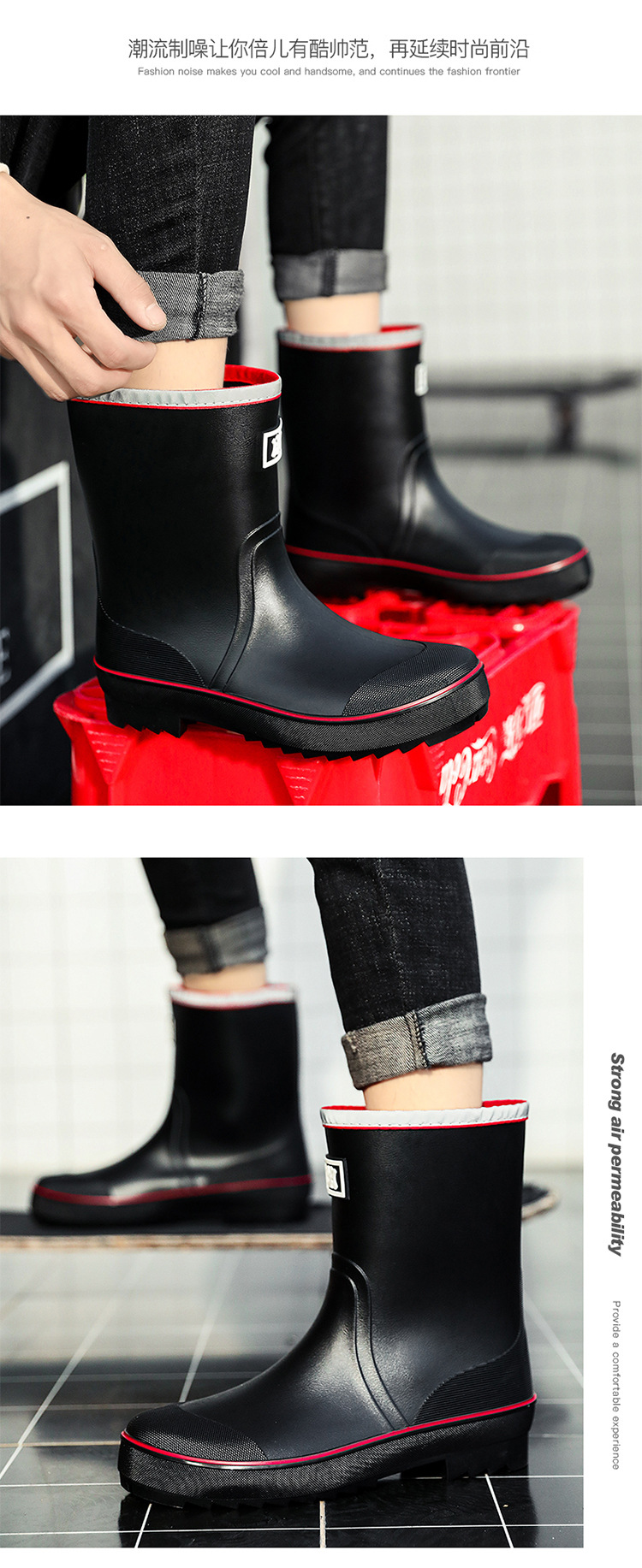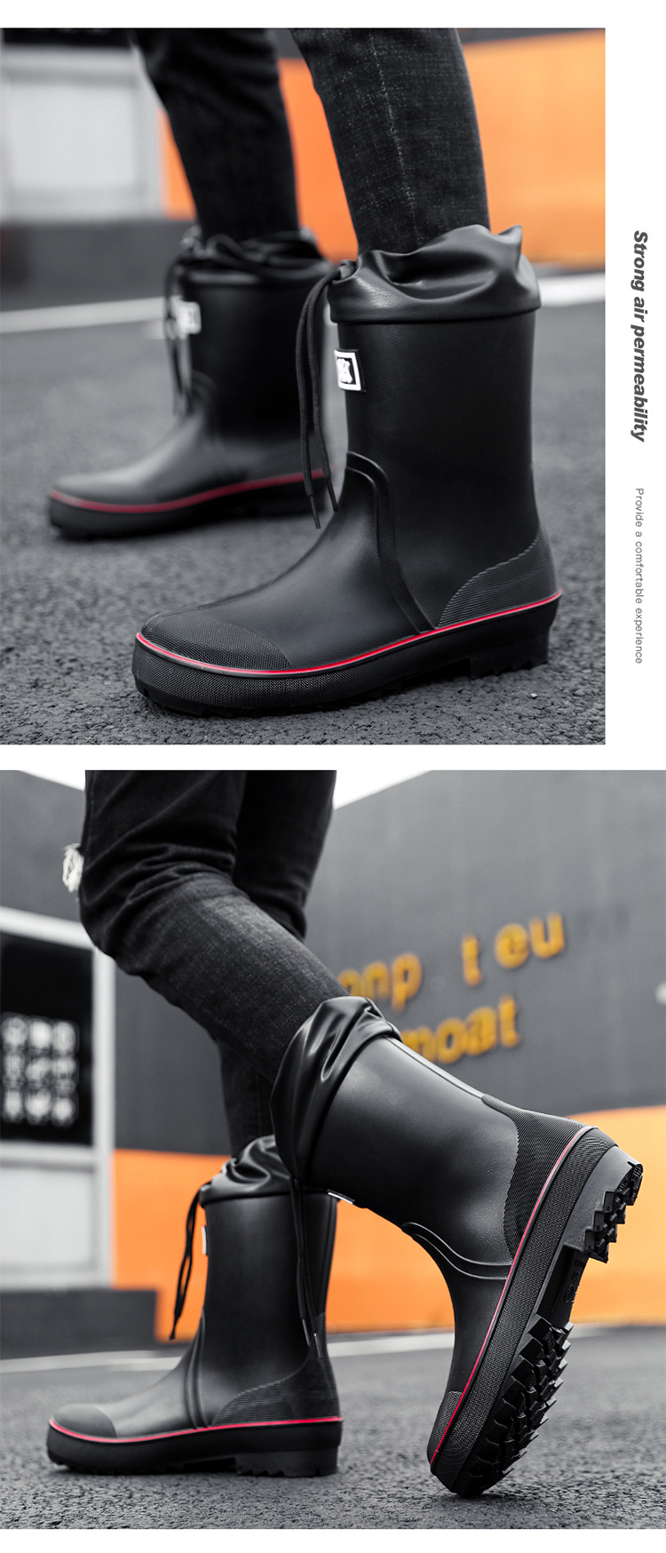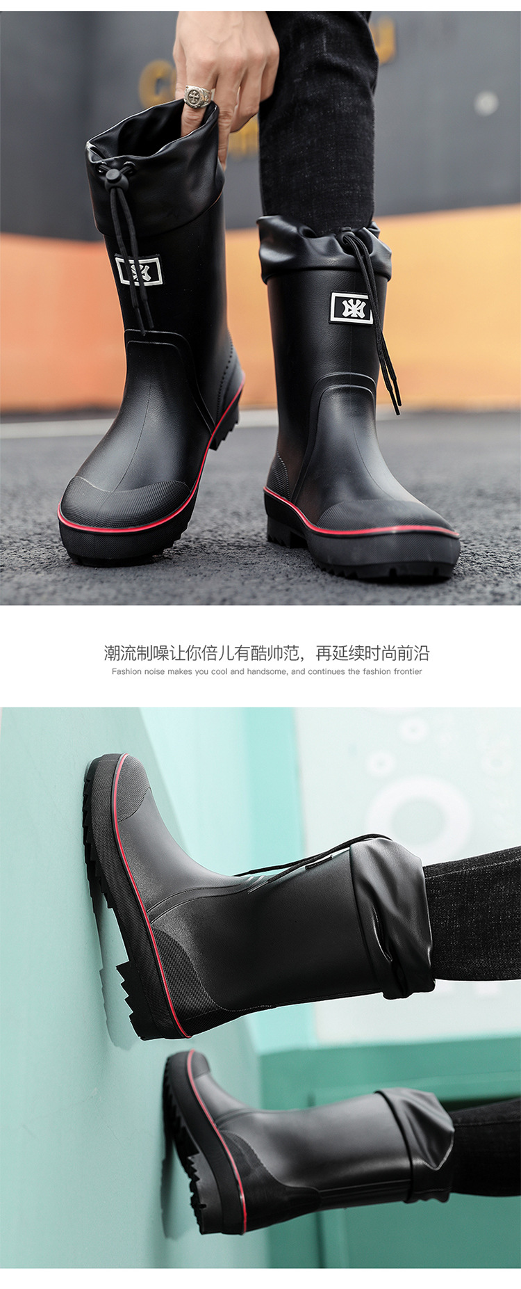 네일 업 장화 남성용 미드 튜브 미끄럼 방지 방수 신발 새로운 패션 야외 워터 부츠 따뜻한 짧은 튜브 고무 신발 남성 국경스토어 가기