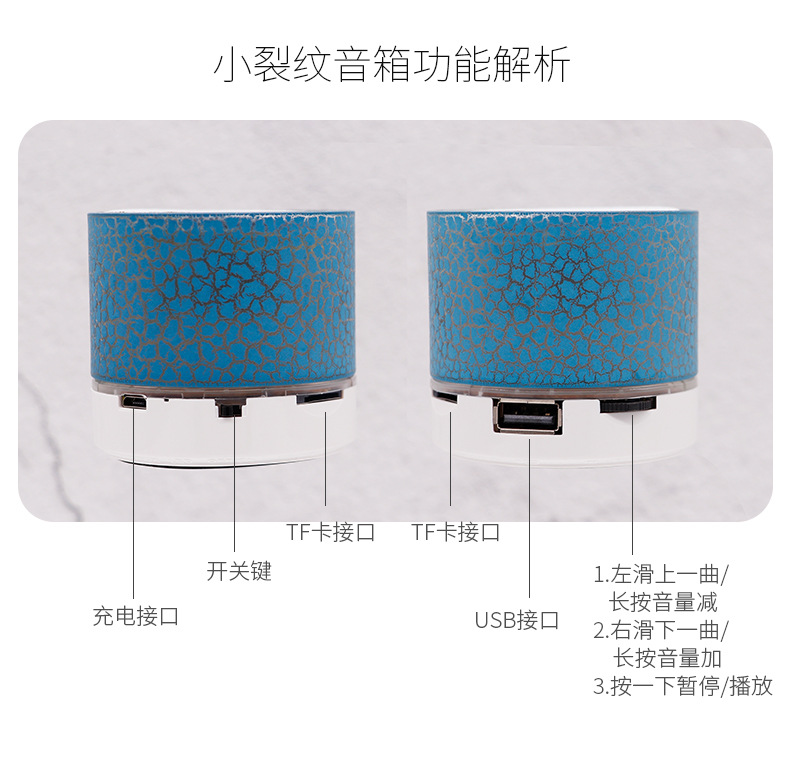 새로운 미니 균열 블루투스 스테레오 휴대용 카드 서브 우퍼 스테레오 led 빛나는 무선 스피커 선물스토어 가기