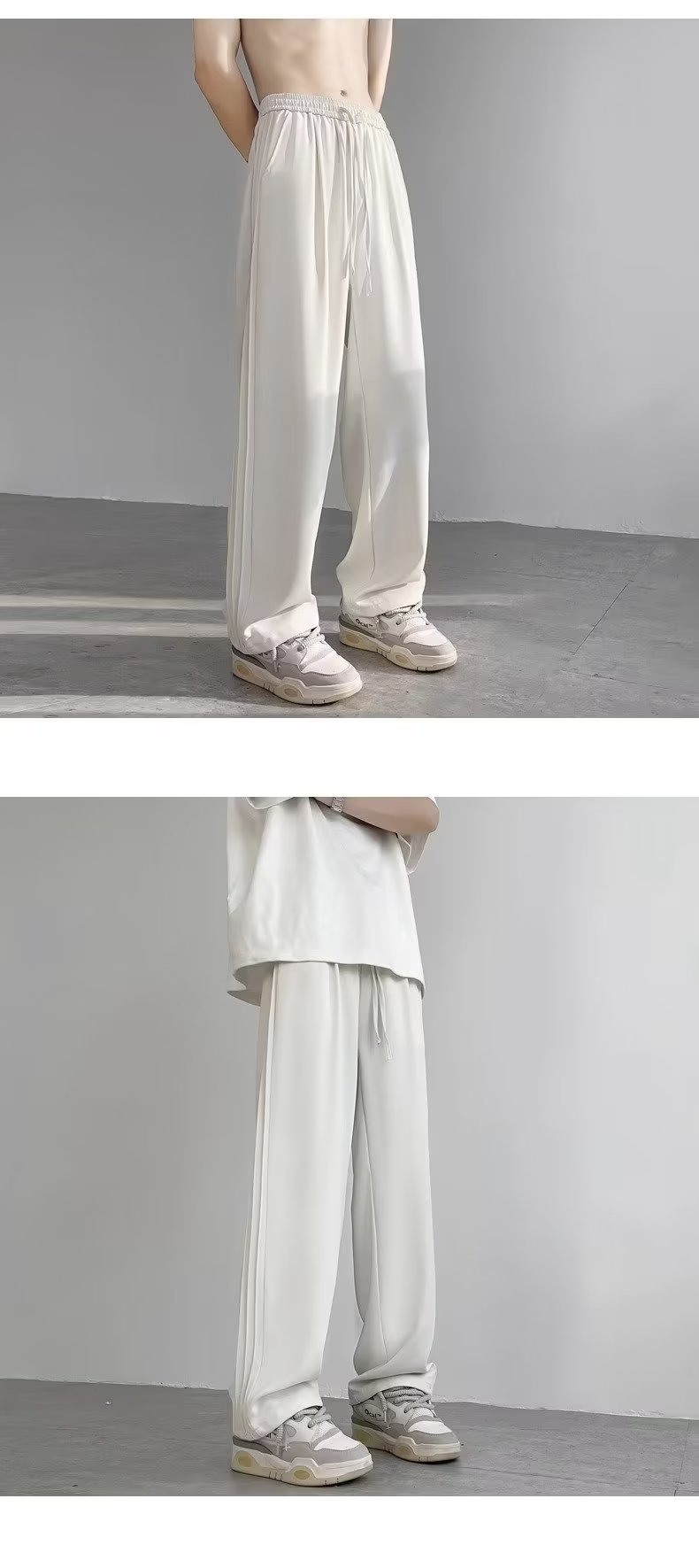 화이트 세트 바지 남자 여름 일본 스타일 복고풍 패션 브랜드 느슨한 플러스 사이즈 넓은 다리 스트레이트 캐주얼 바지