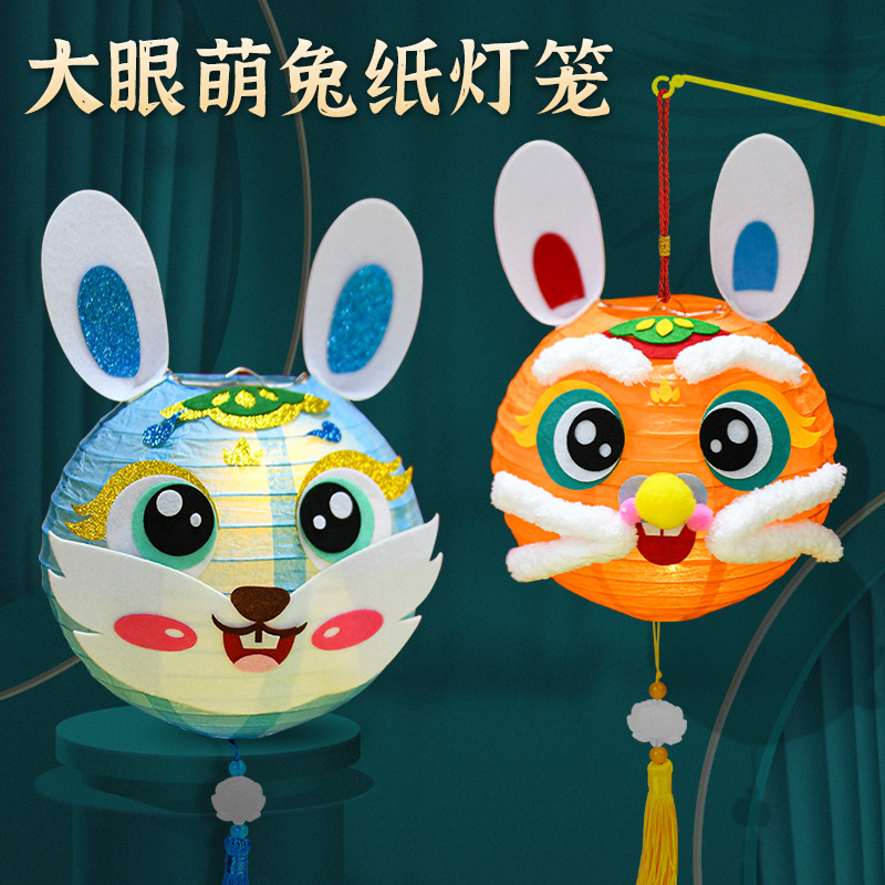 중추절 수제 랜턴 DIY 소재 가방 만들기 어린이 유치원 빛나는 종이 랜턴 토끼 랜턴 장식스토어 가기