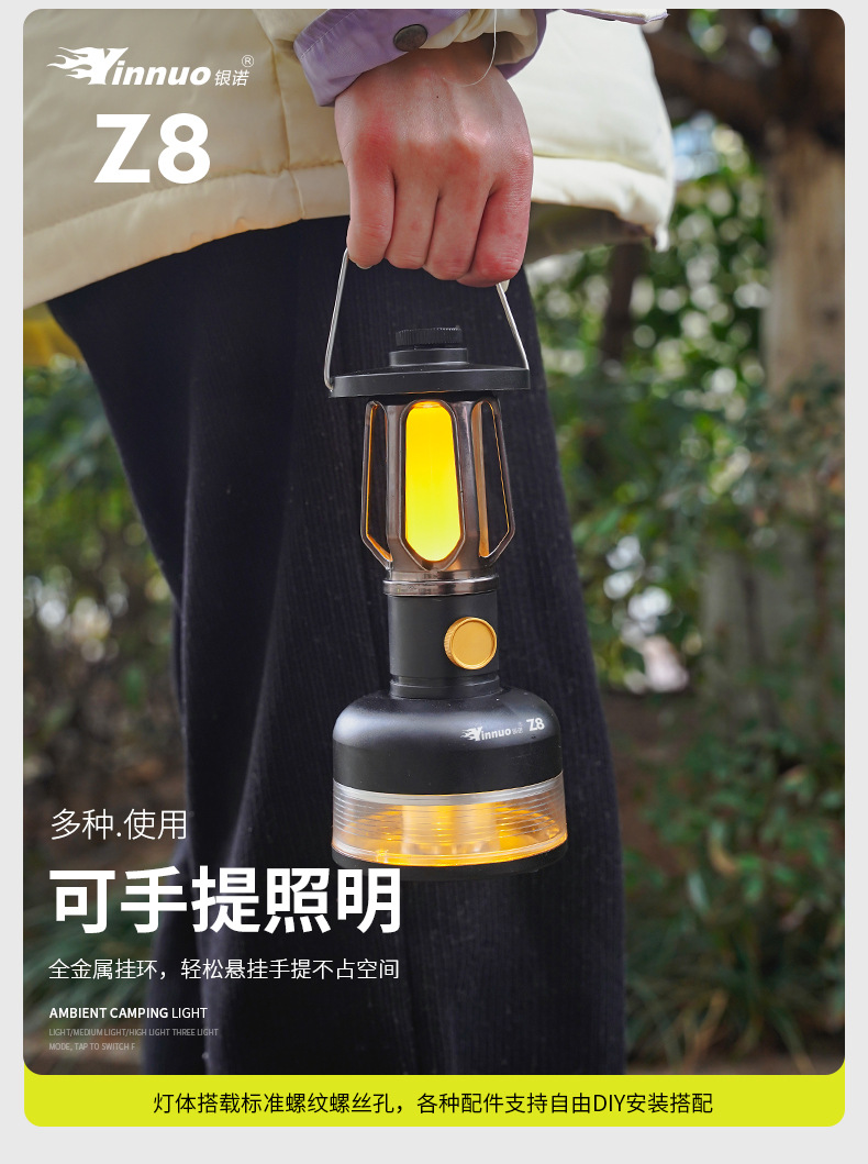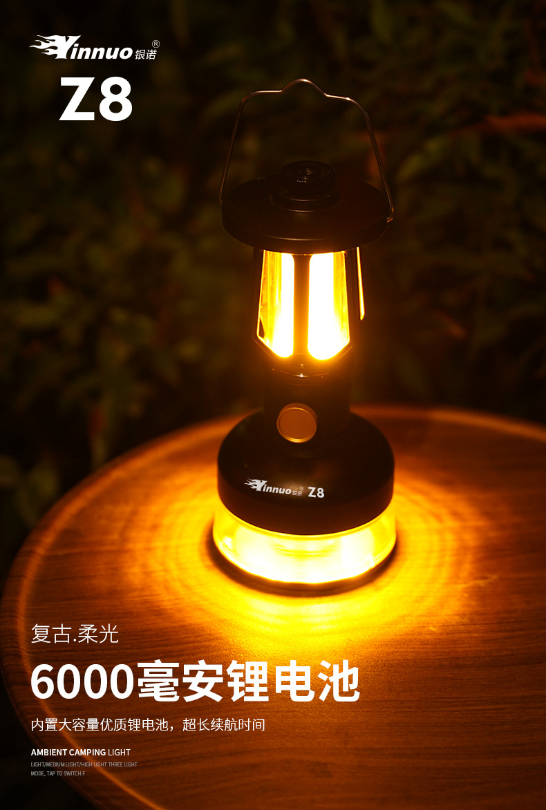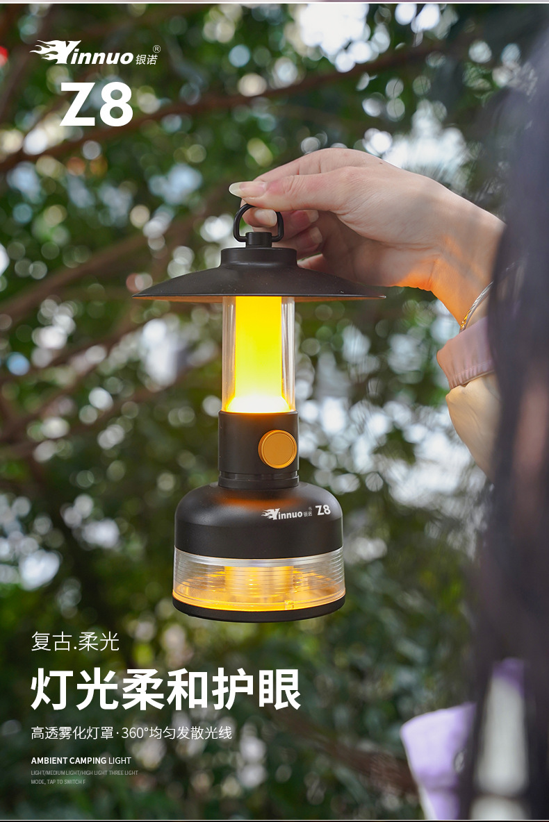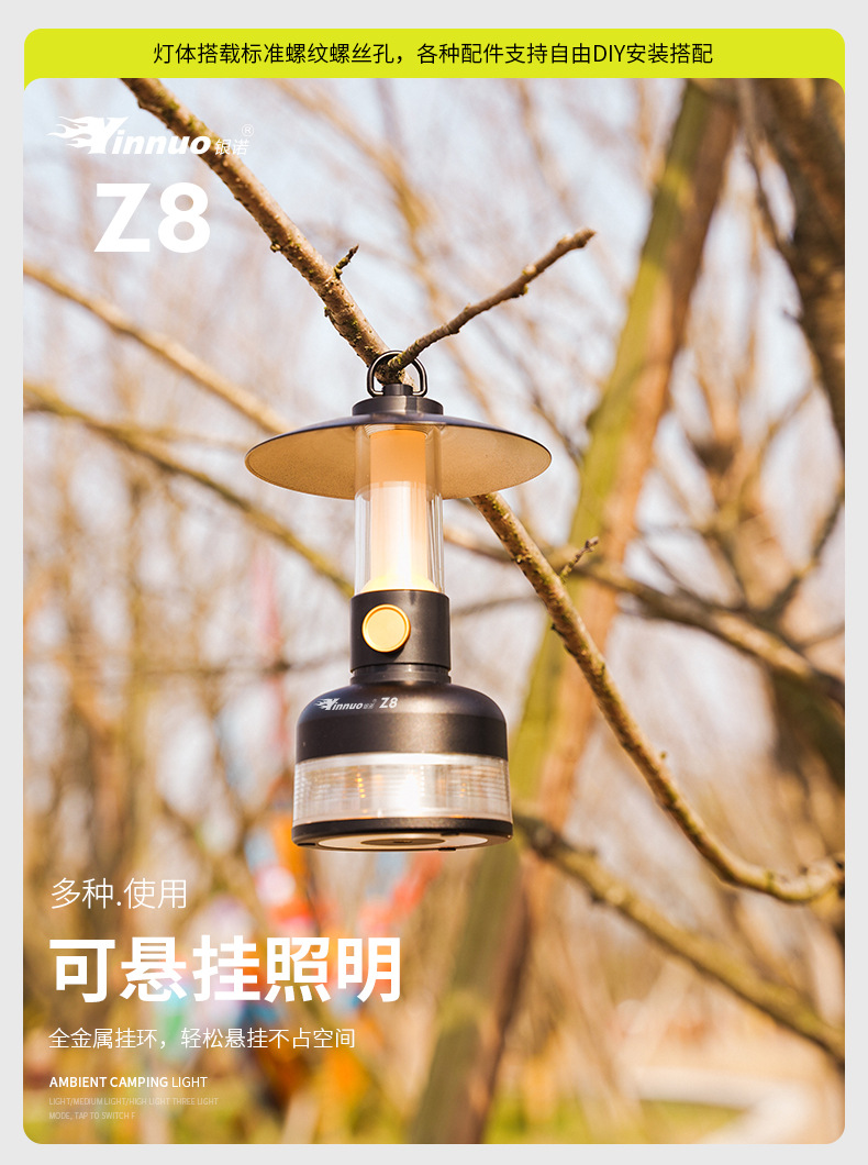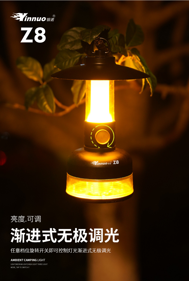 Yinnuo Z8 캠핑 야외 슈퍼 긴 내구성 분위기 레트로 충전 필드 텐트 조명 교수형 램프 다기능 말 랜턴