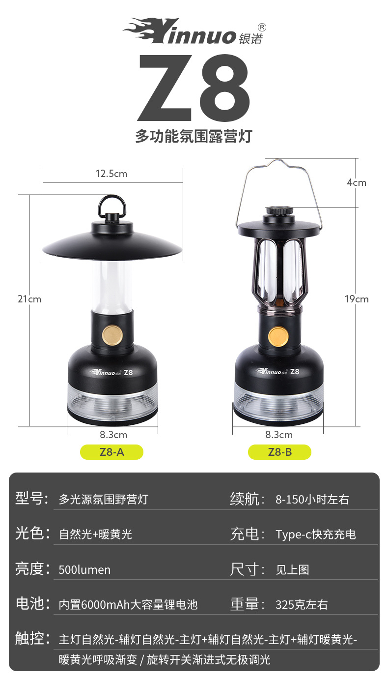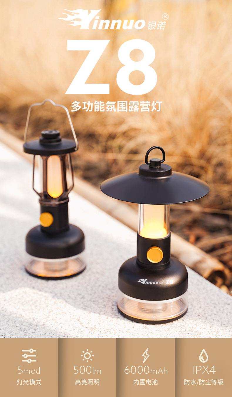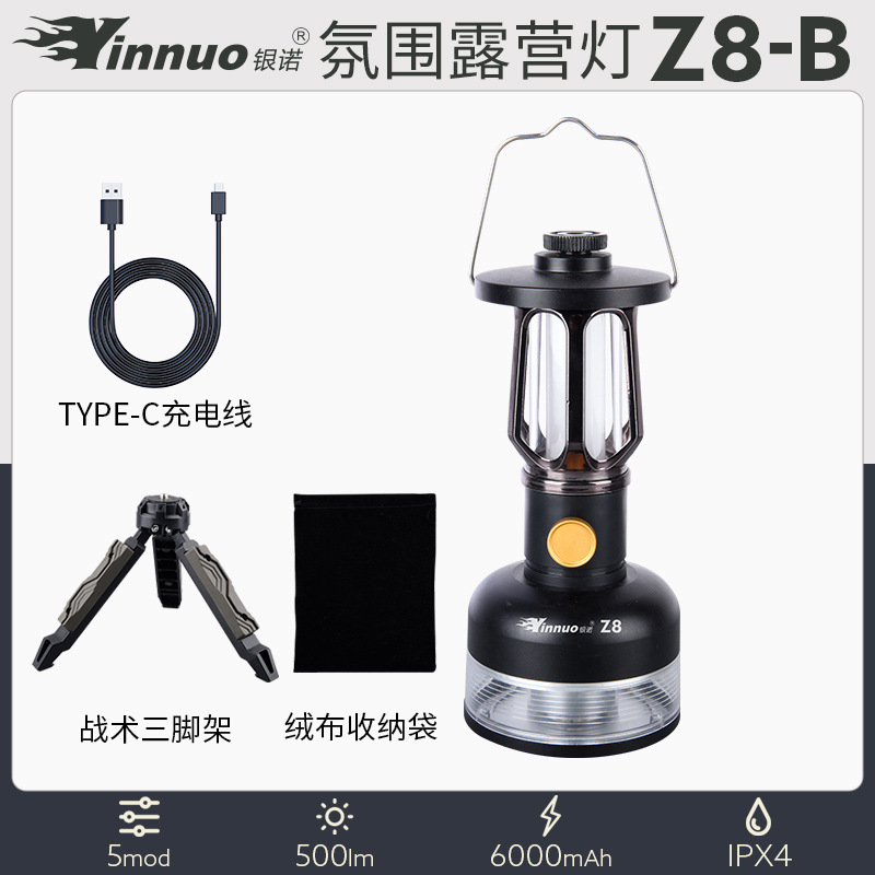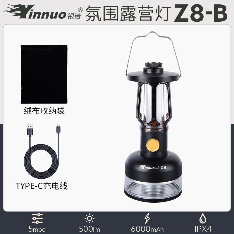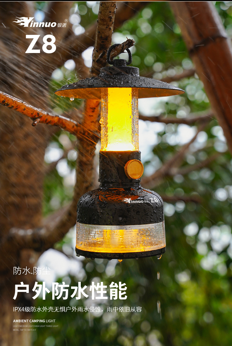 Yinnuo Z8 캠핑 야외 슈퍼 긴 내구성 분위기 레트로 충전 필드 텐트 조명 교수형 램프 다기능 말 랜턴