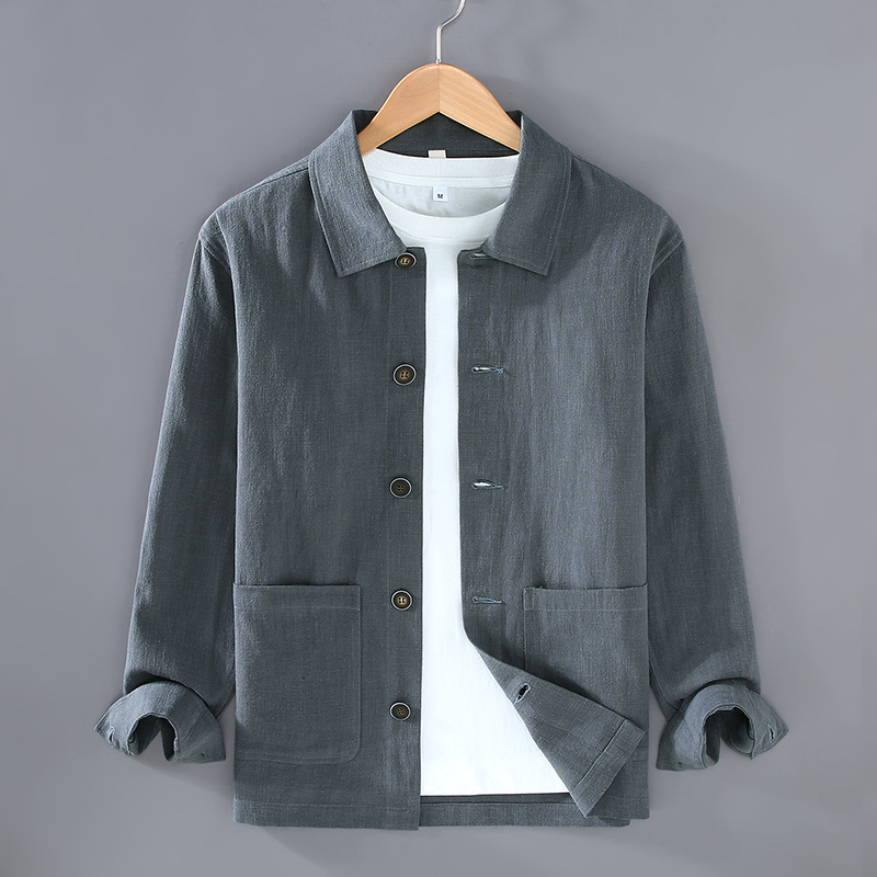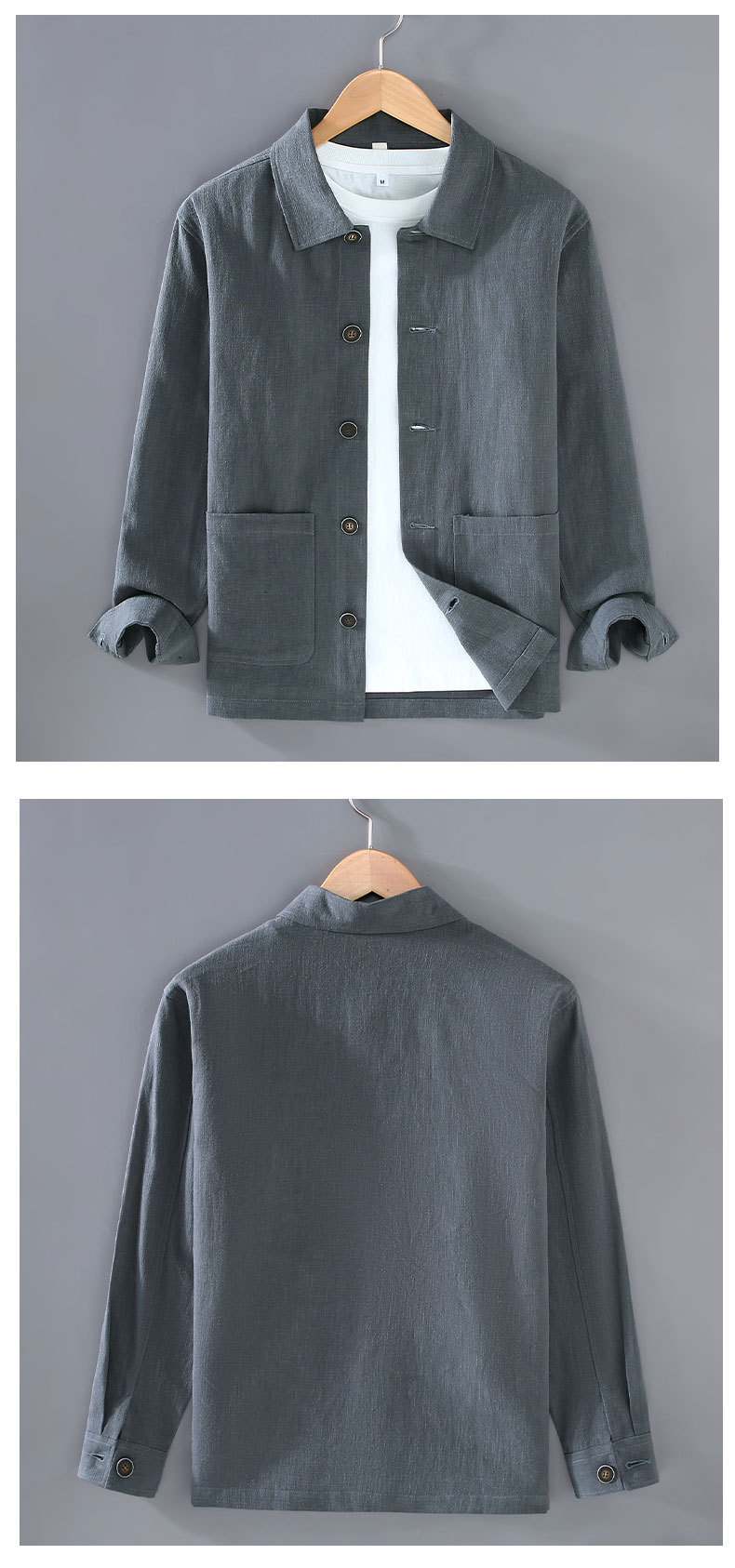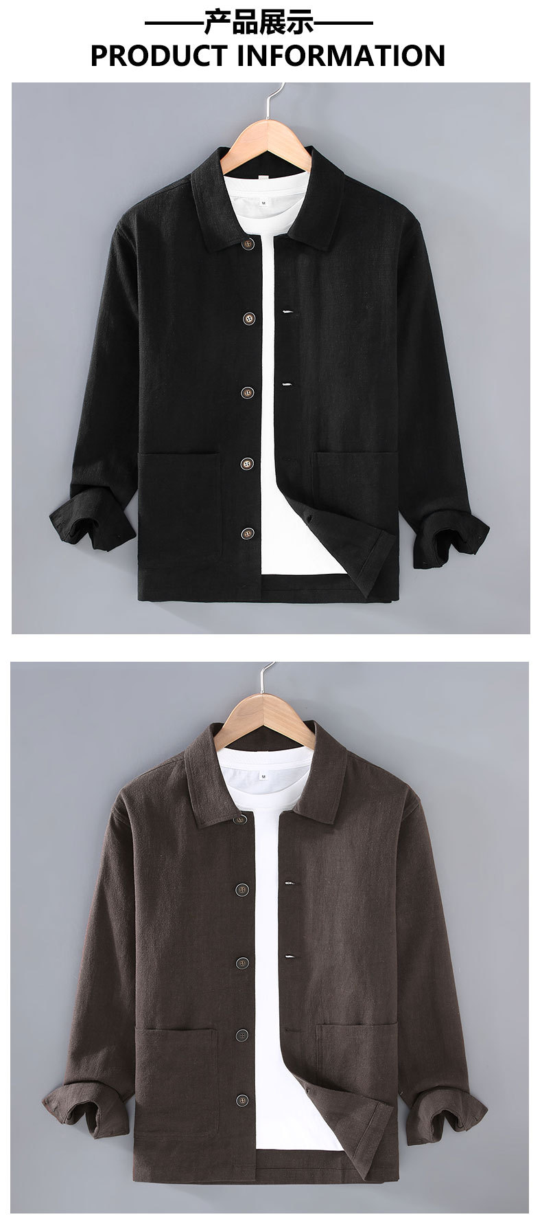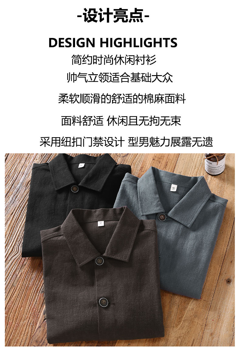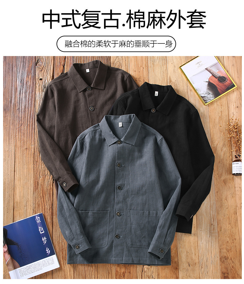 2366 봄과 가을 새로운 남성 라미 셔츠 레트로 캐주얼 트렌디 코튼 및 리넨 패브릭 재킷 코트 남성용 탑
