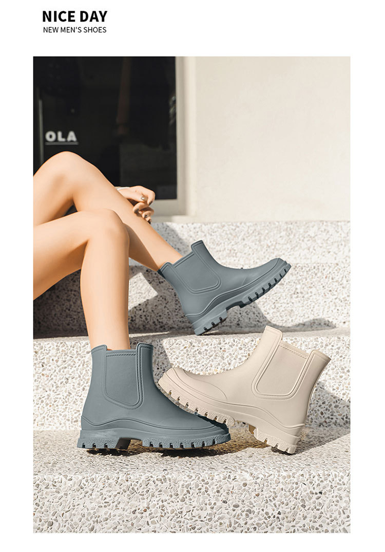 국경 간 장화 여성용 짧은 튜브 미끄럼 방지 방수 신발 패션 장화 성인 야외 두꺼운 바닥 워터 부츠 짧은 튜브 고무 신발 여성