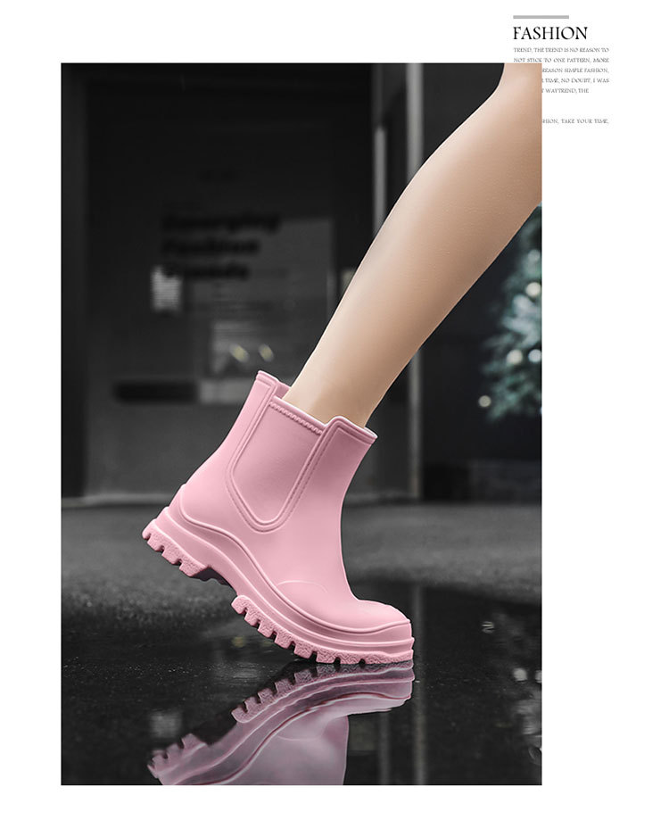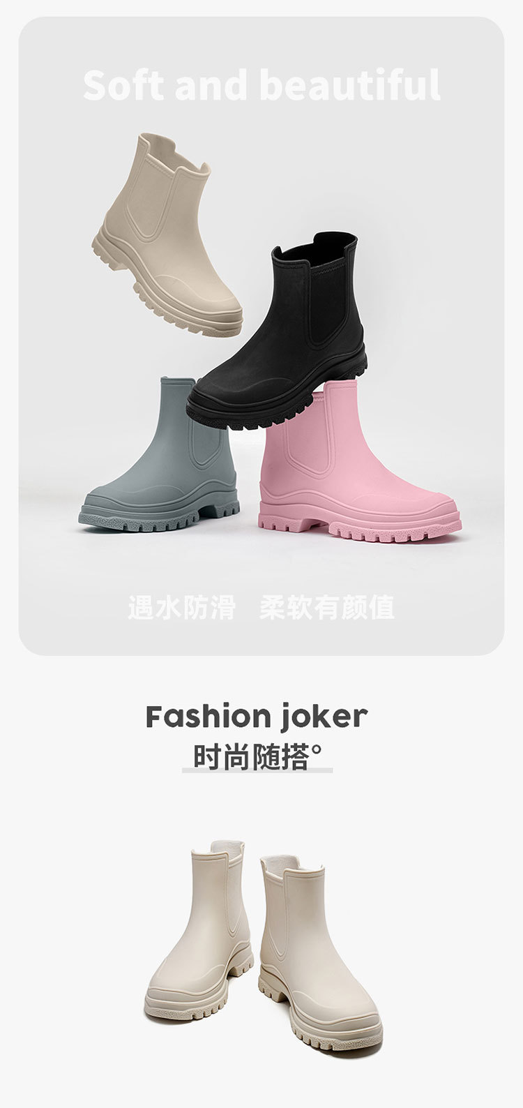 국경 간 장화 여성용 짧은 튜브 미끄럼 방지 방수 신발 패션 장화 성인 야외 두꺼운 바닥 워터 부츠 짧은 튜브 고무 신발 여성스토어 가기