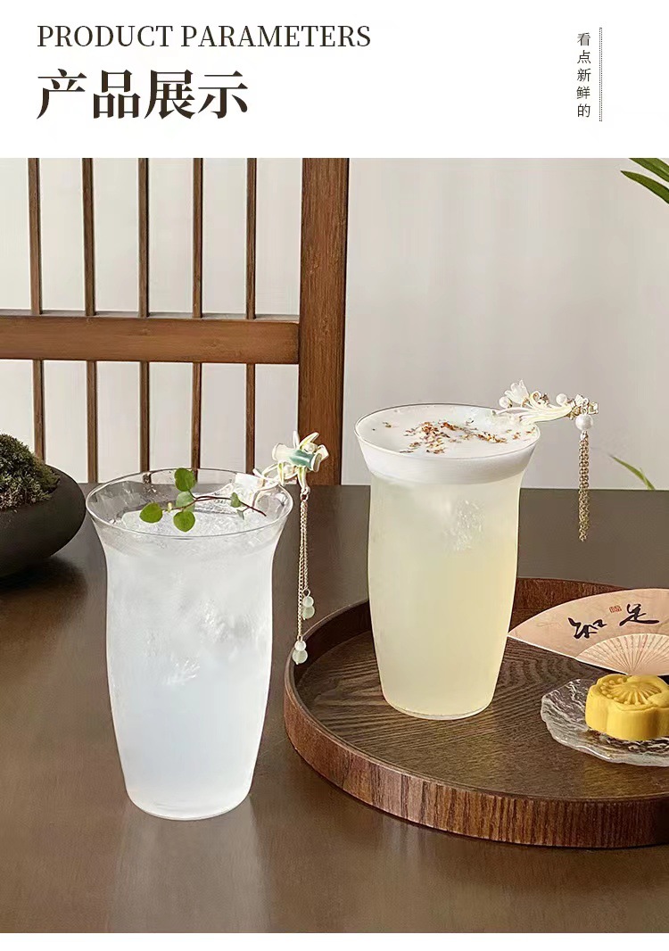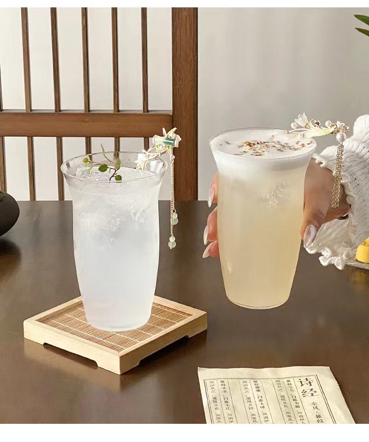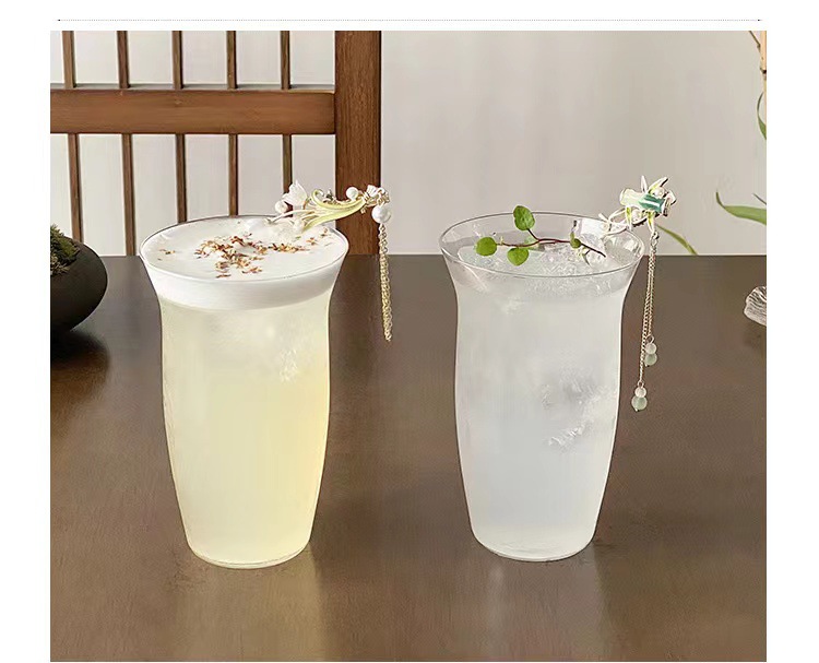 Ins 스타일 오픈 컵 간단한 경량 투명 유리 컵 라떼 커피 컵 차가운 음료 컵 주스 컵 음료 컵