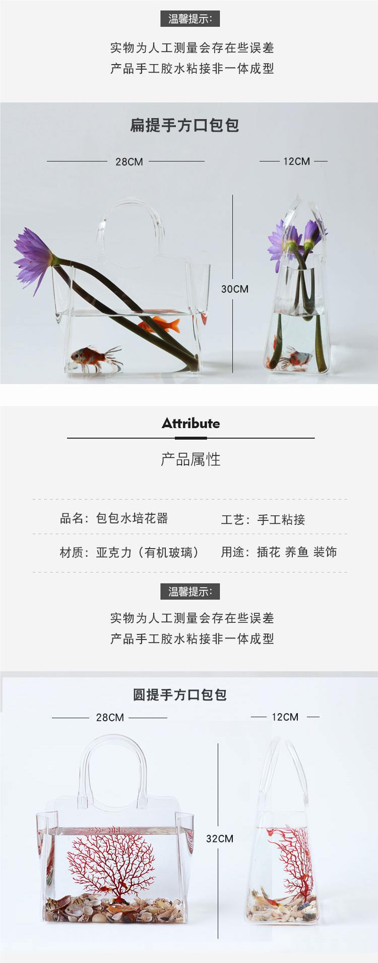 북유럽 아크릴 가방 수경 꽃병 인터넷 축하 장식 거실 물고기 탱크 꽃 냄비 꽃 꽃병 창조적 인 집