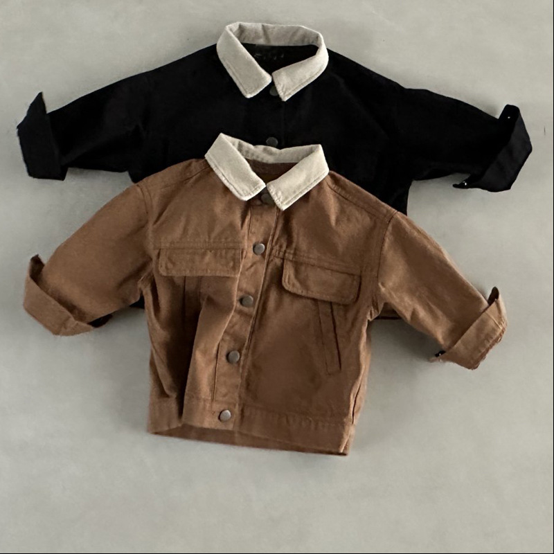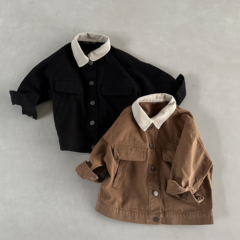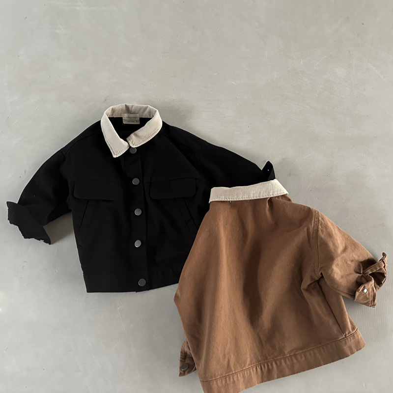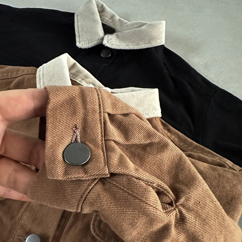 한국 스타일 Ins 아동복 가을과 겨울 새 코트 패션 컬러 매칭 옷깃 작업복 스타일 캐주얼 카디건 재킷 소년 소녀스토어 가기