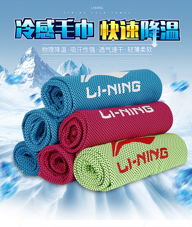 Li Ning 냉각 수건 땀 흡수 체육관 땀 수건 남자 배드민턴 농구 러닝 땀 수건 속건 스포츠 얼음 수건스토어 가기
