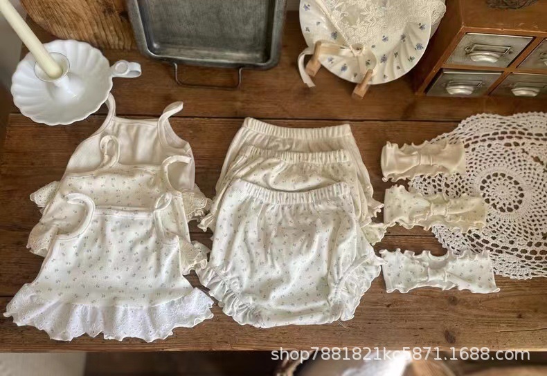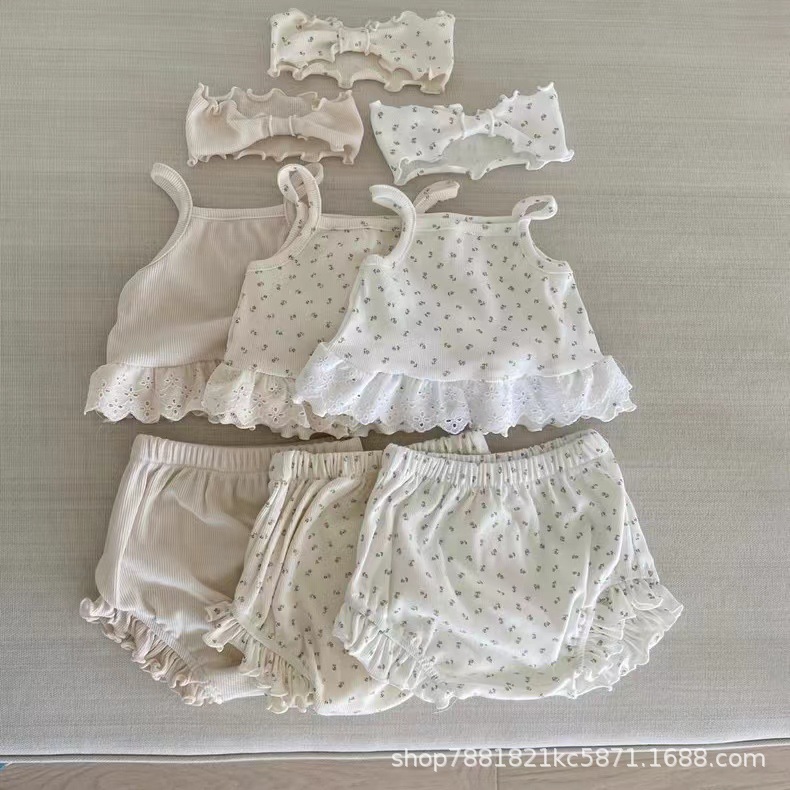 아기 소녀의 얇은 코튼 부드러운 꽃 슬링 티셔츠 빅 P 반바지 공주 세트 아기 소년의 정원 조끼 투피스 세트스토어 가기