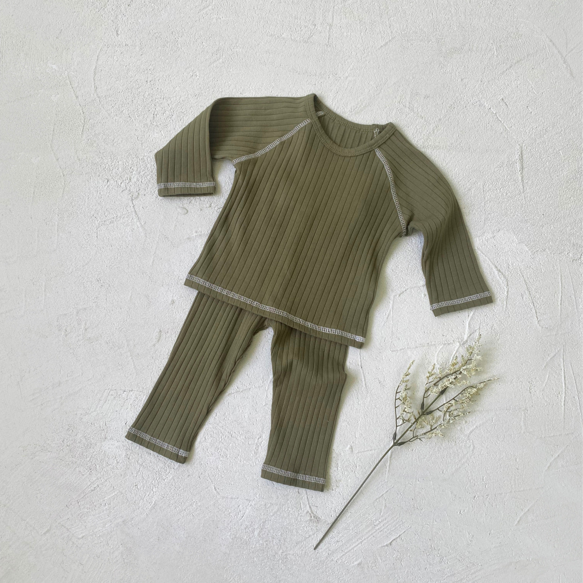 2024 가을 아기 클래스 부드러운 왁스 면화 두꺼운 핏 두꺼운 탄성 티셔츠 탑베이스 세트 아기 잠옷스토어 가기