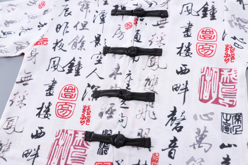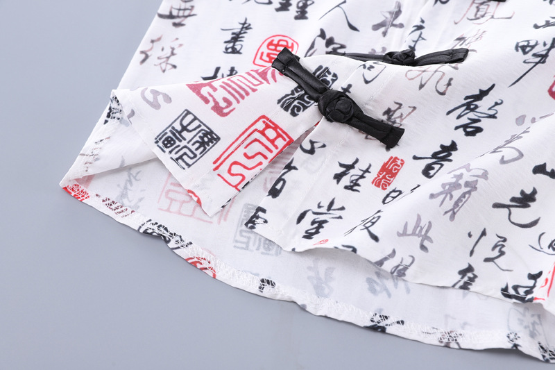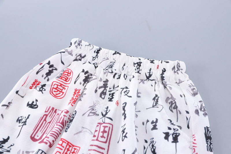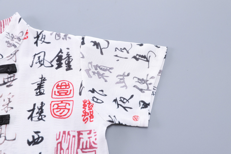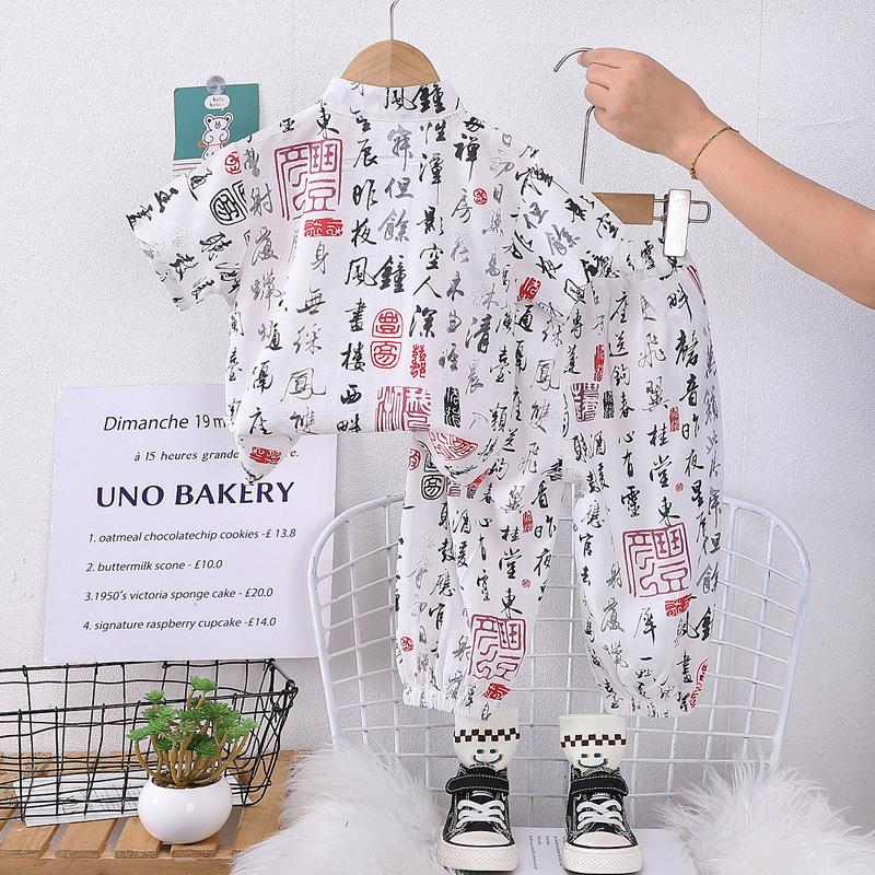 어린이 반팔 세트 새로운 한국식 컬러 블록 여름 전체 인쇄 중국 버클 반팔 바지 소년 캐주얼 세트