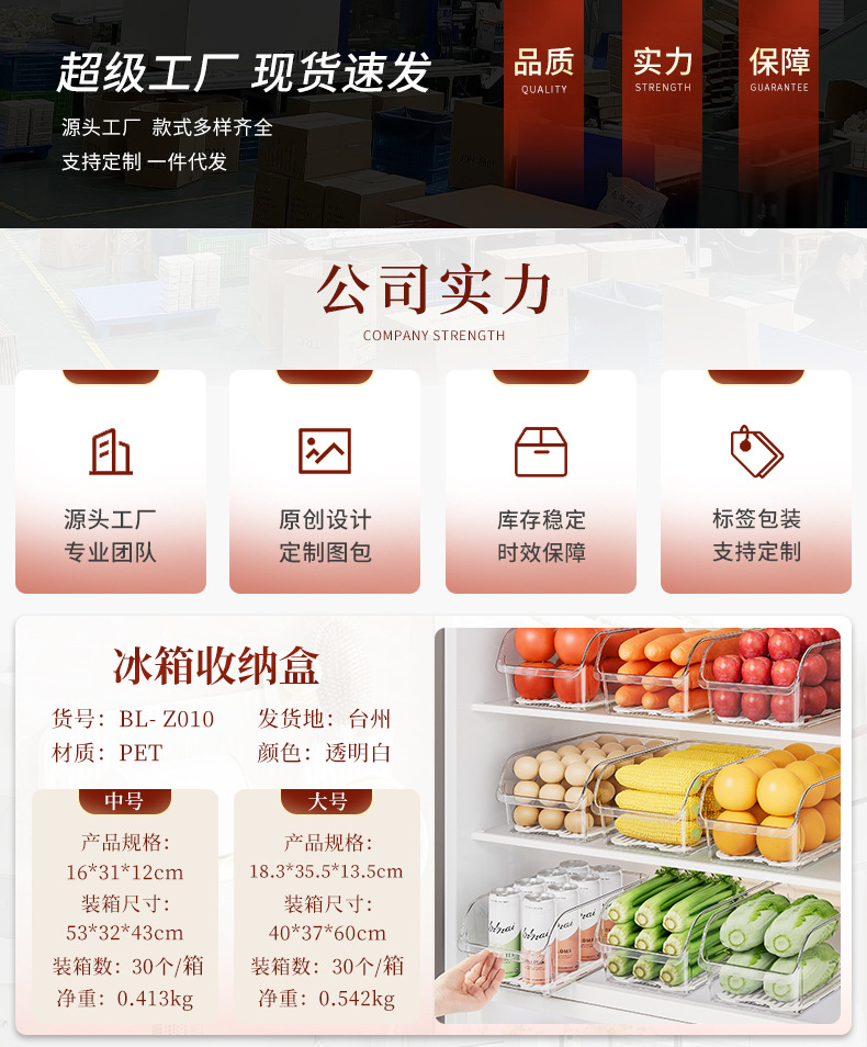 맞춤형 국경 간 식품 등급 야채 및 과일 정리 상자 주방 냉동 보관 상자 서랍 형 냉장고 보관 상자스토어 가기