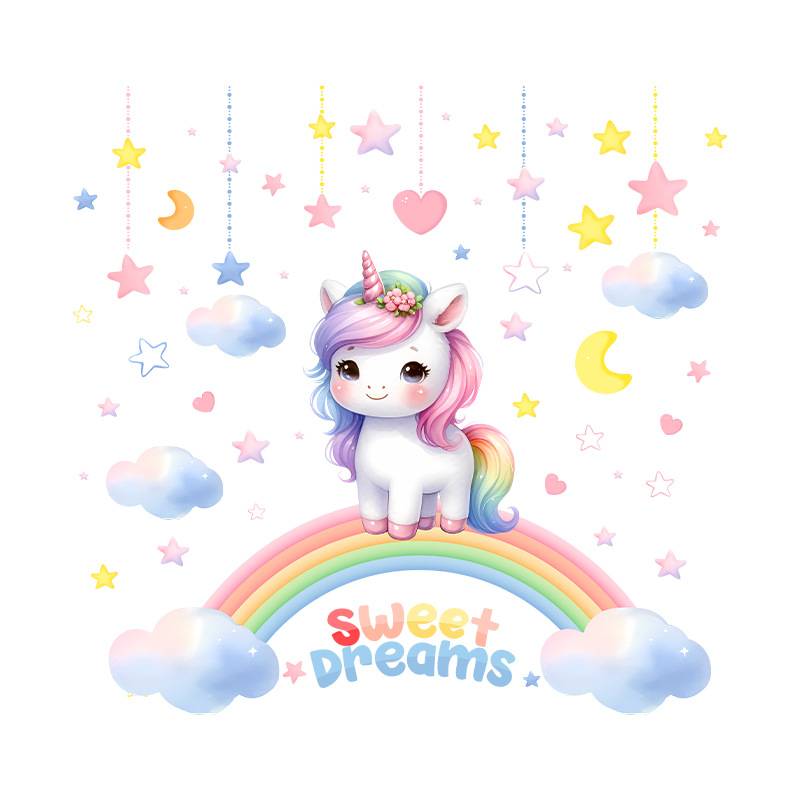 Huizhicai CH39151 무지개 유니콘 벽 스티커 따뜻한 어린이 침실 만화 스타일 테마 장식 자체 접착