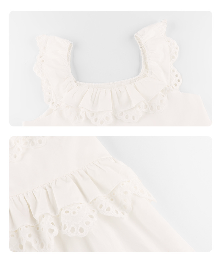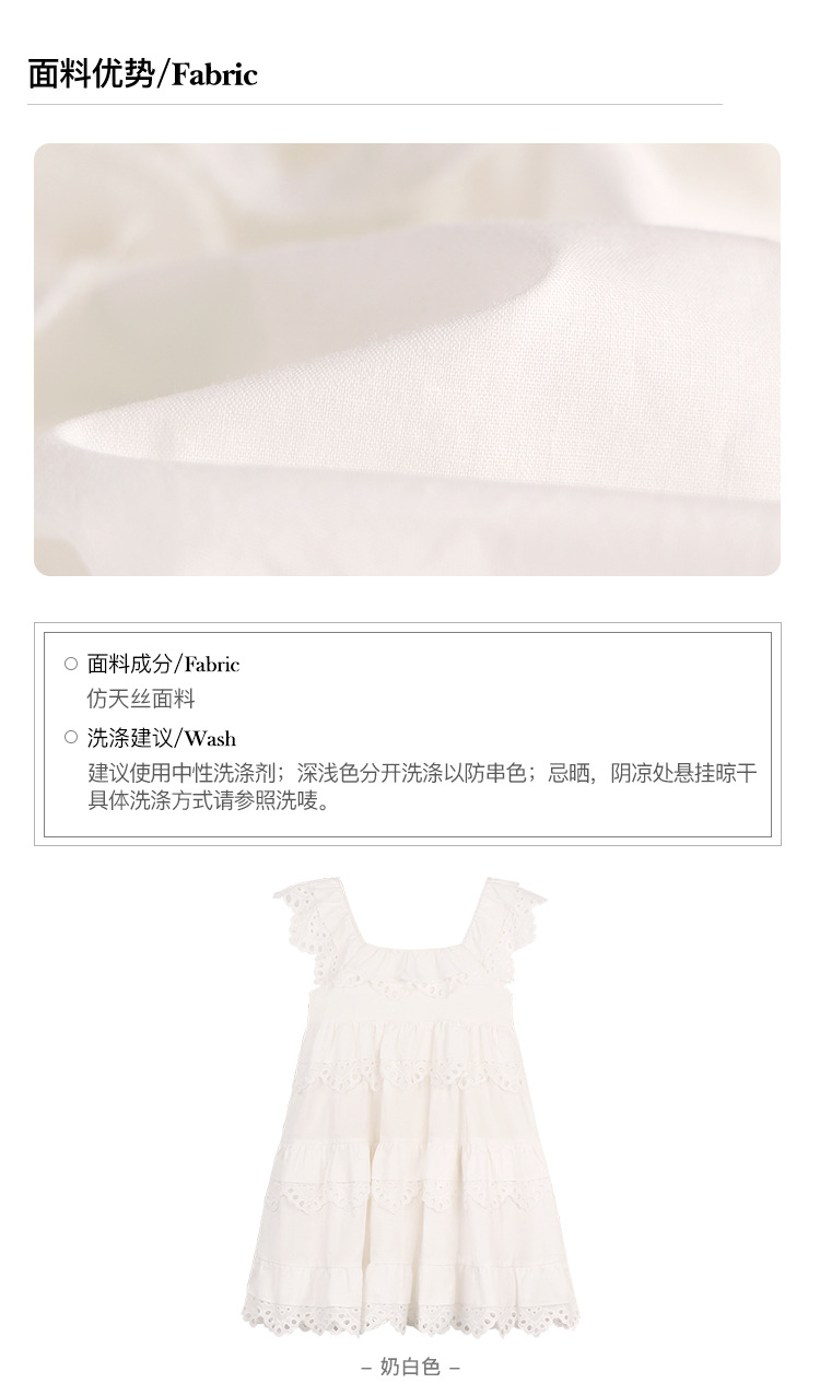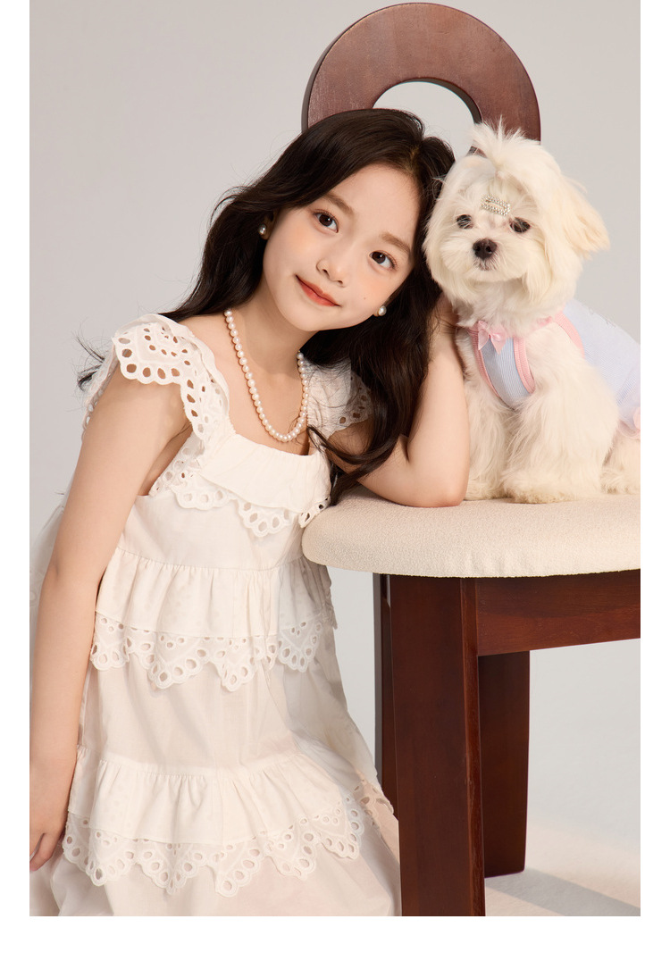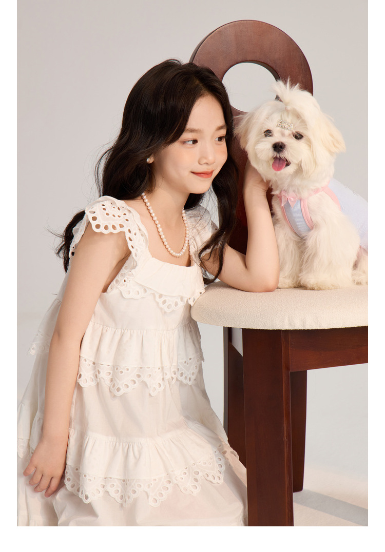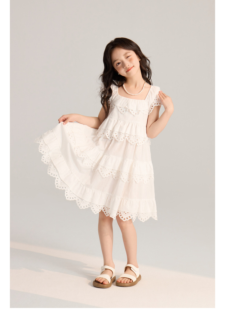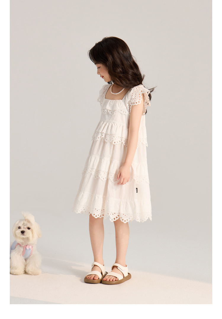 Amybaby 소녀 원피스 2024 여름 새로운 공주 원피스 웨스턴 스타일 레이스 할로우 작은 플라이 슬리브 케이크 원피스스토어 가기