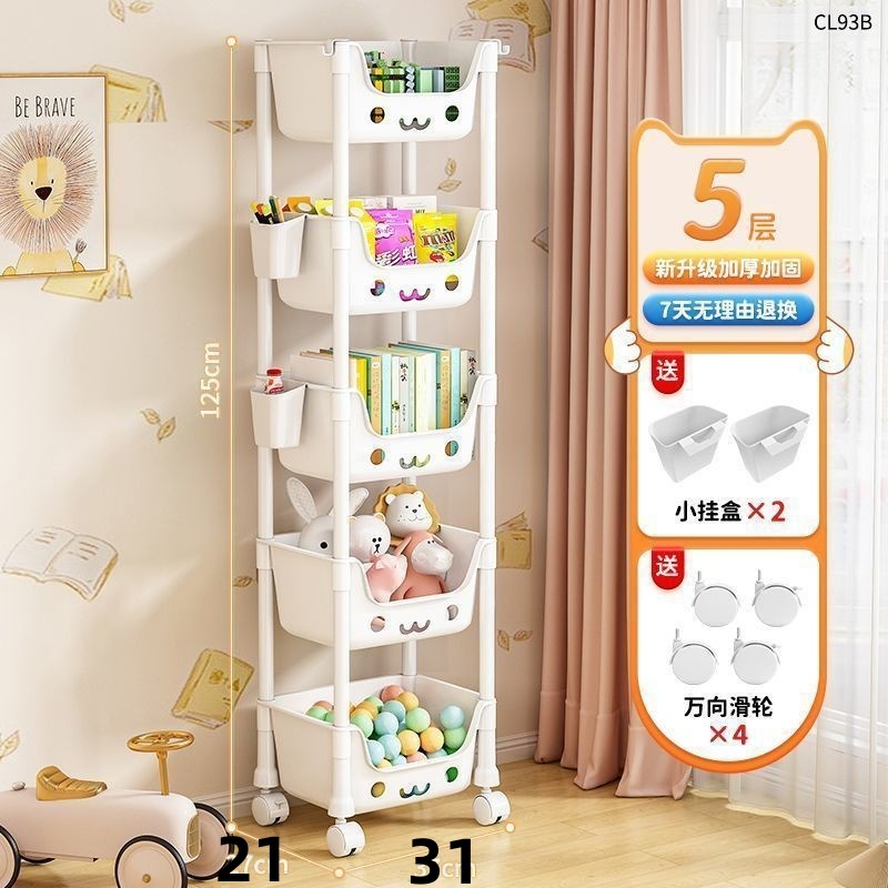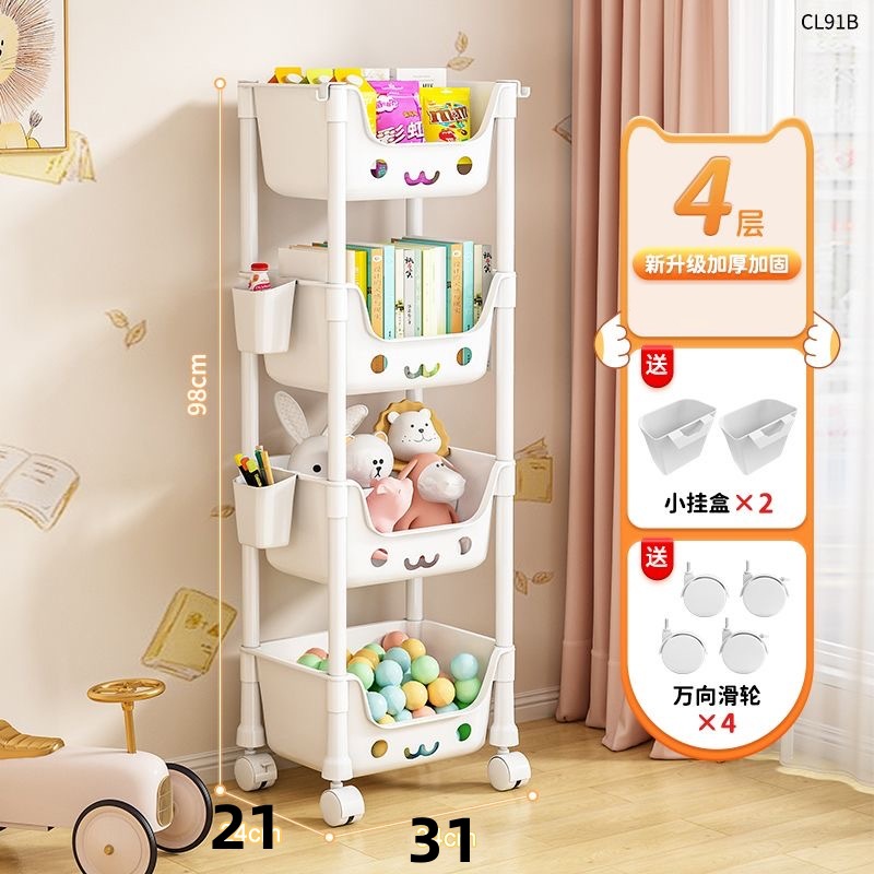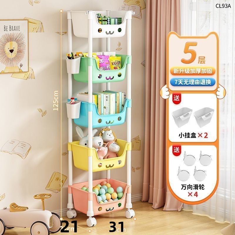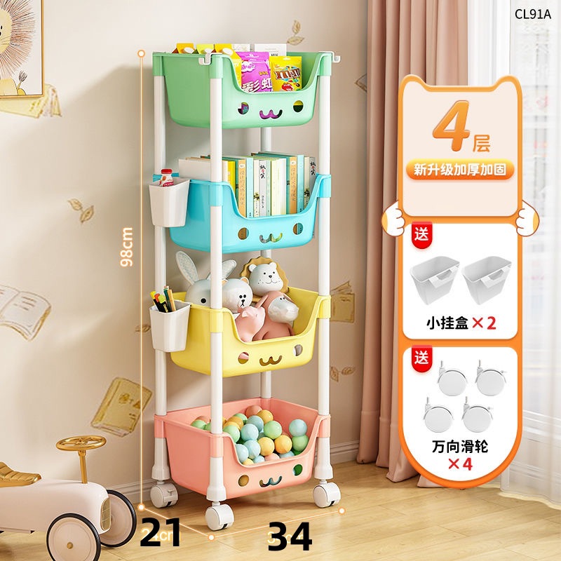 만화 트롤리 다층 스토리지 랙 어린이 장난감 바닥 스토리지 바퀴가있는 가정용 모바일 스낵 정리 책장