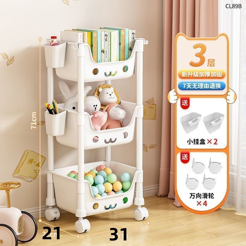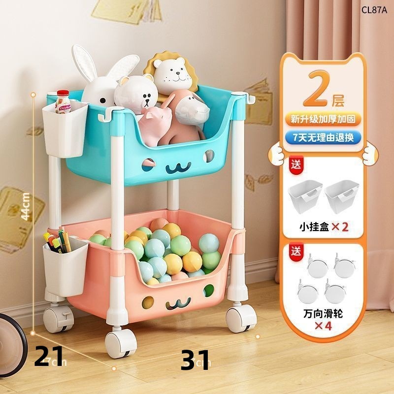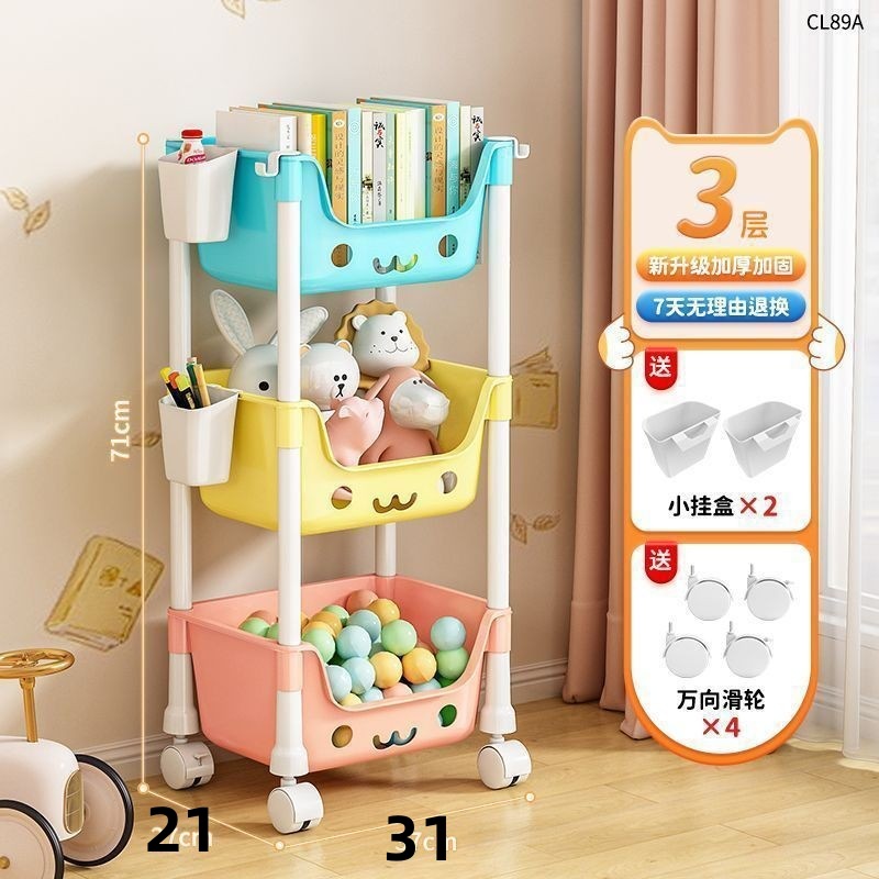 高颜值马卡龙小推车多层置物架儿童玩具落地收纳家用书架移动零食