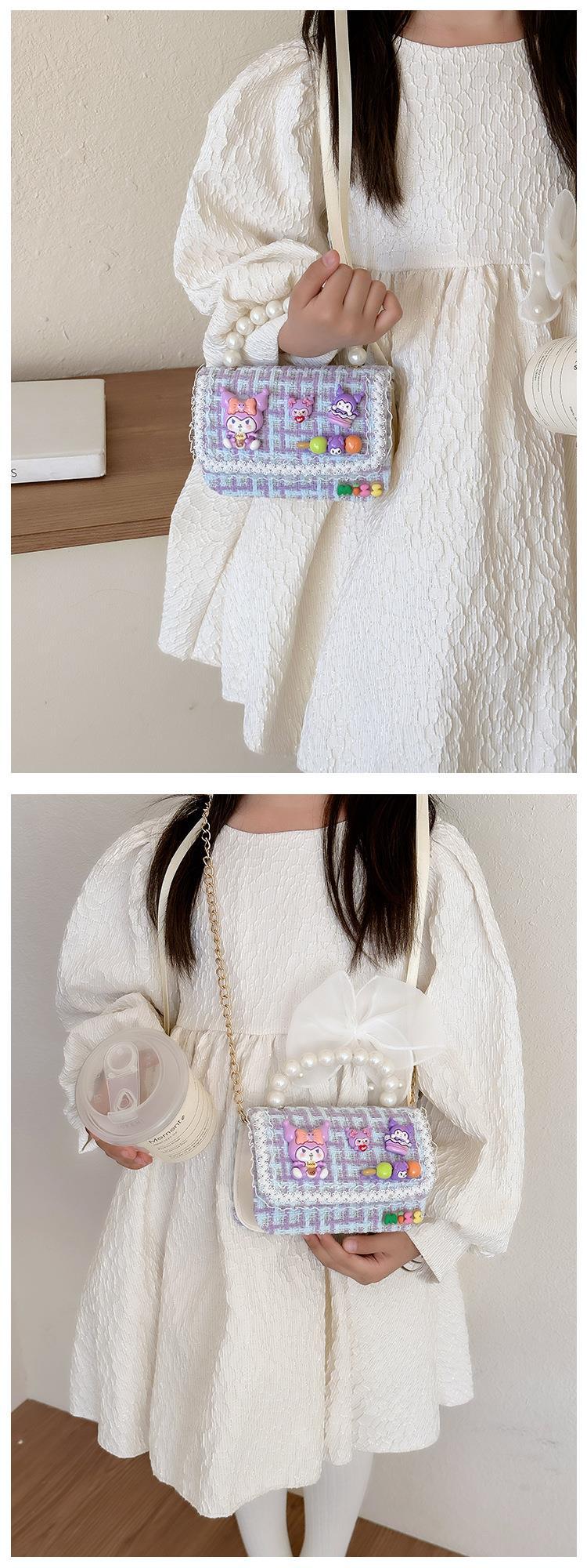 어린이 가방 어깨 가방 소녀 세련된 패션 만화 진주 핸드백 어린이 가방 공주 체인 크로스 바디 가방