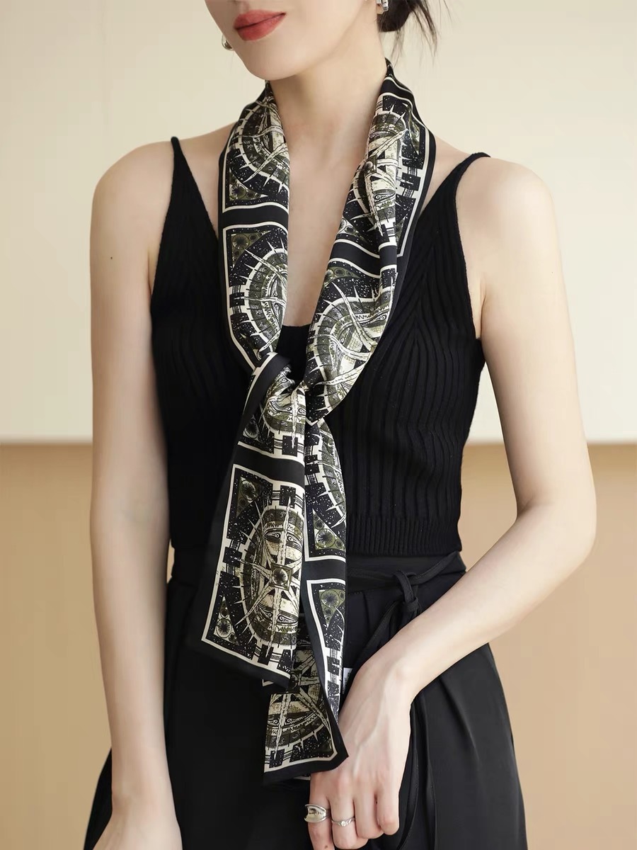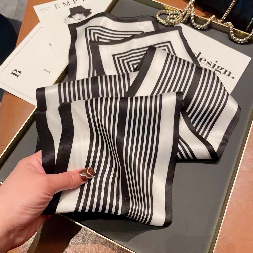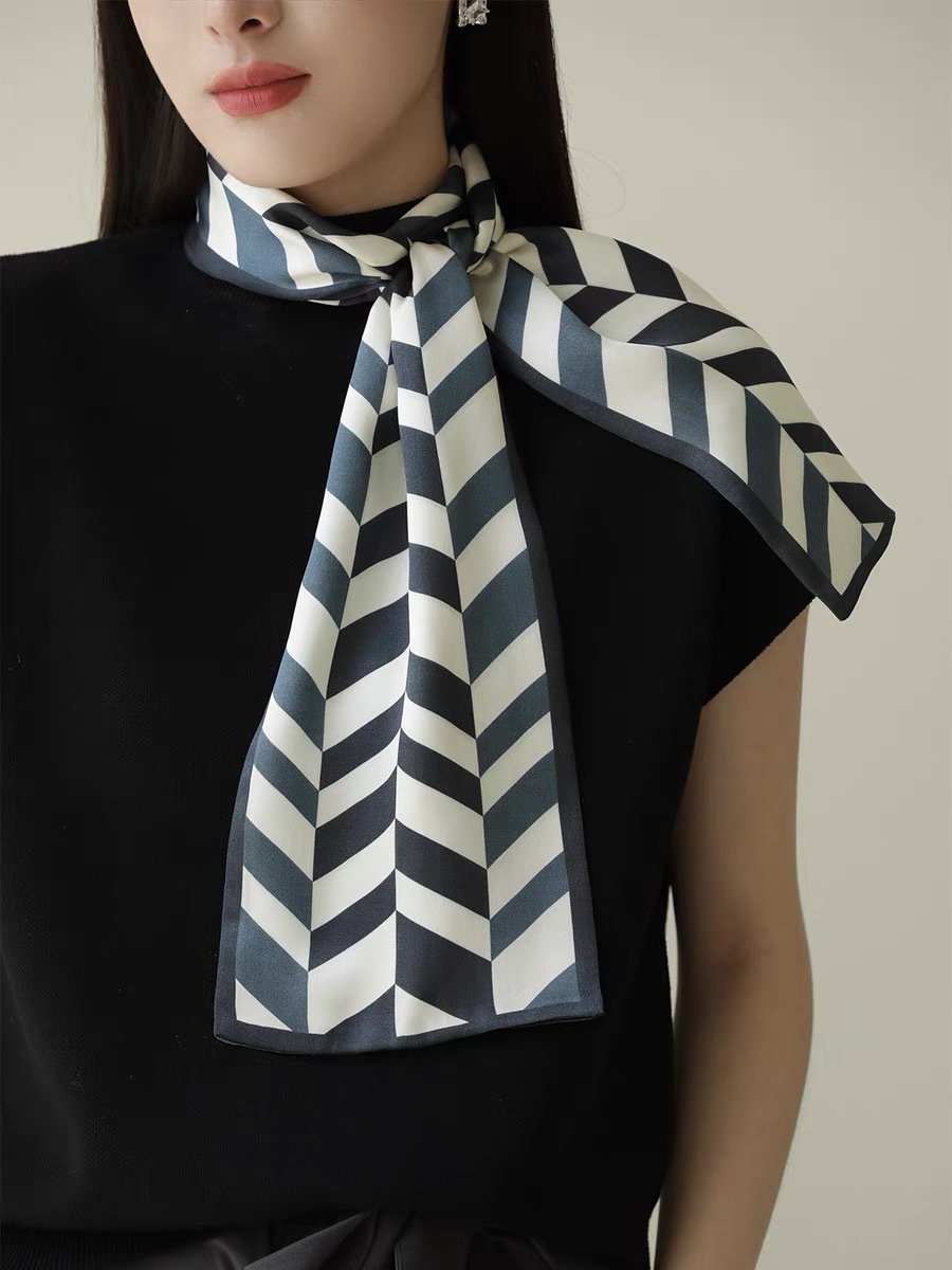 한국 스타일 실크 스트라이프 긴 봄과 가을 장식 스카프 전문 스카프 100% 뽕나무 실크 리본 여성을위한 새로운 스타일 스카프스토어 가기