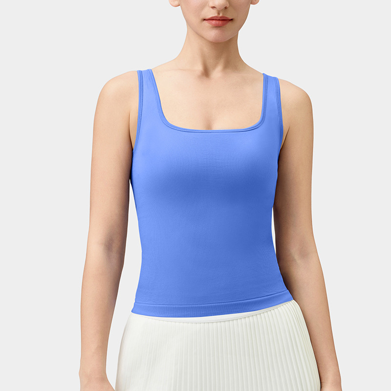 요가복 여성 민소매 스퀘어넥 슬립 타이트 기본형 고정형 가슴 패드 스포츠 탑 피트니스 트레이닝복