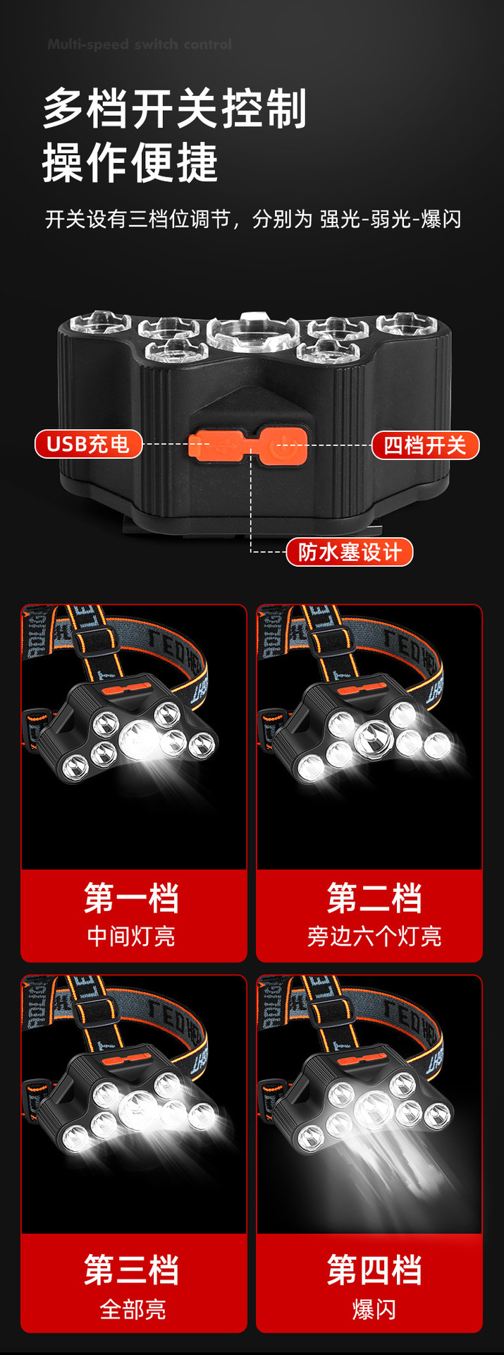 档位:前灯:一档强光--二档中光--三挡爆闪