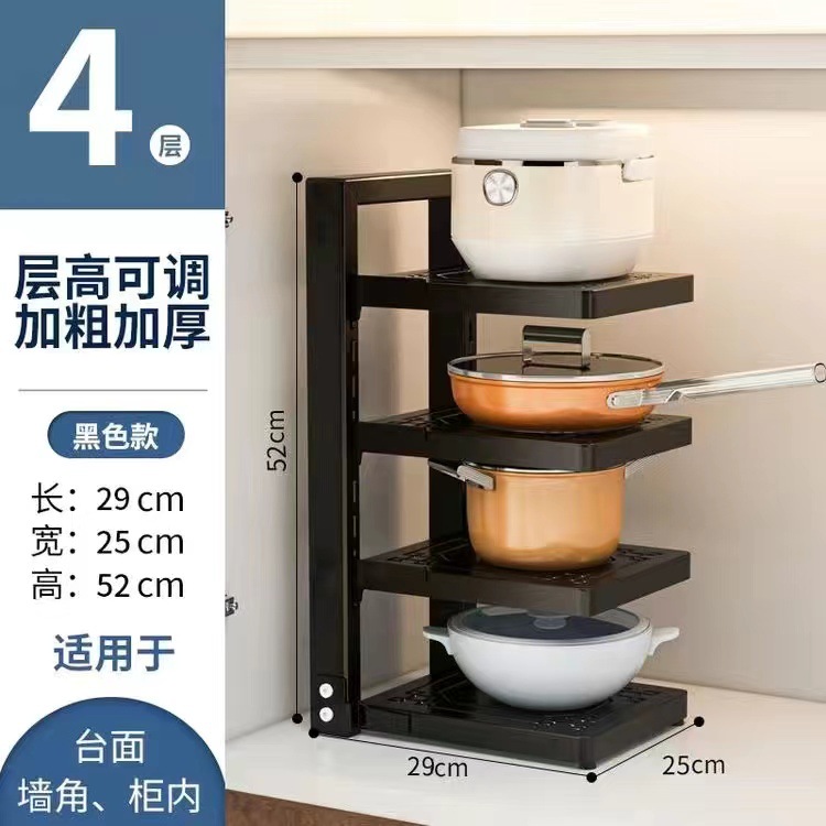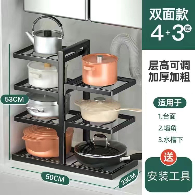 이중 행 냄비 랙 다층 냄비 저장 랙 가정용 바닥 카운터 탑 캐비닛 싱크 주방 저장 랙 공장 판매 없음스토어 가기