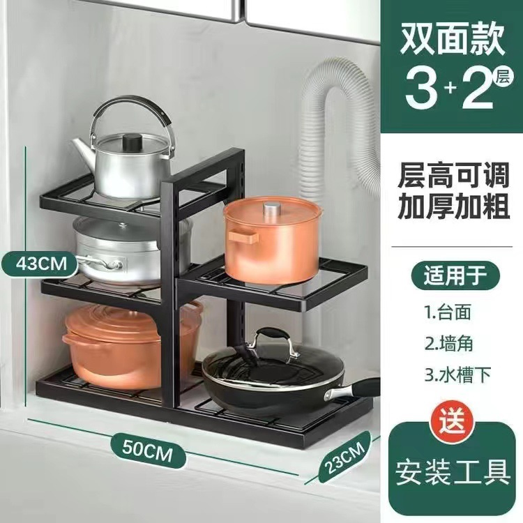 이중 행 냄비 랙 다층 냄비 저장 랙 가정용 바닥 카운터 탑 캐비닛 싱크 주방 저장 랙 공장 판매 없음