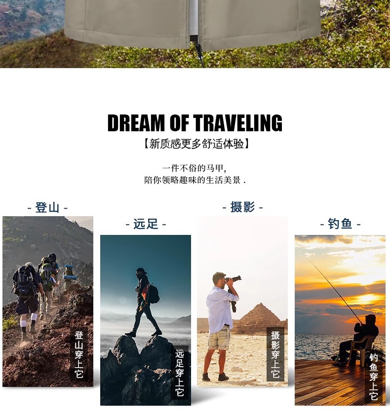 낚시 및 등산 스탠드 칼라 조끼 속건성 및 통기성 남성용 야외 레저 봄 여름 사진 야외 작업복 조끼스토어 가기