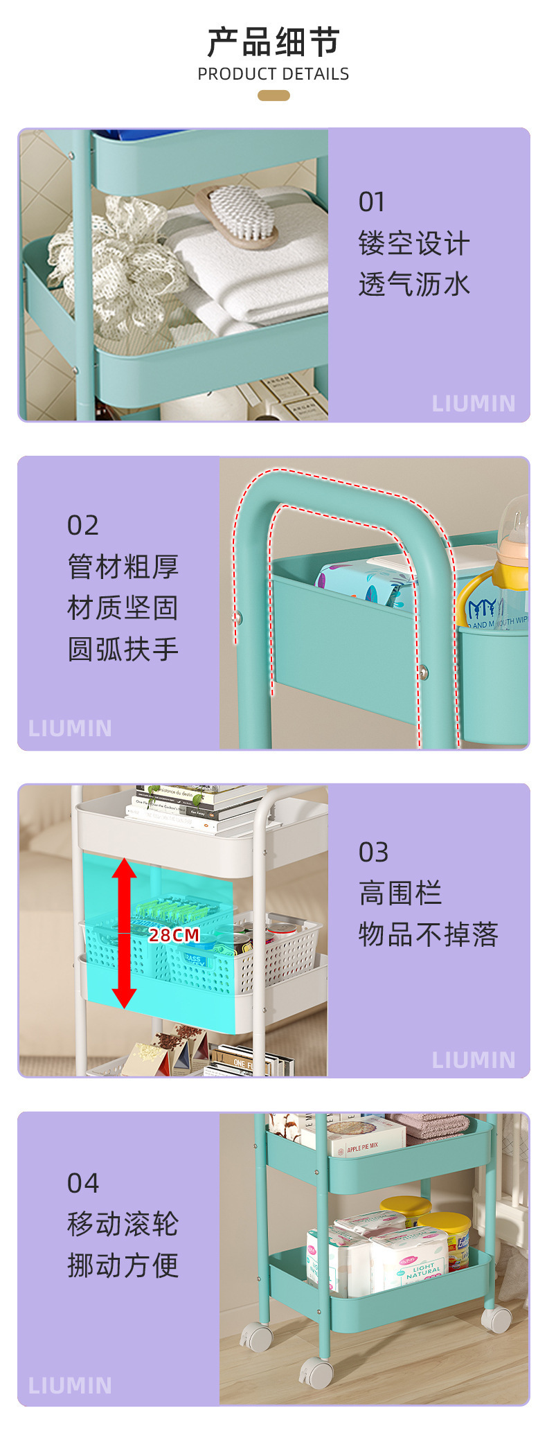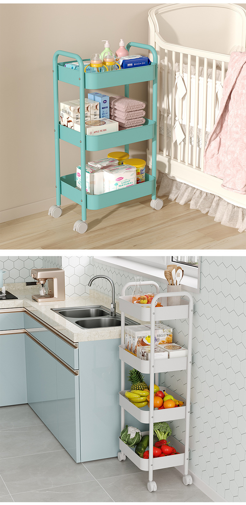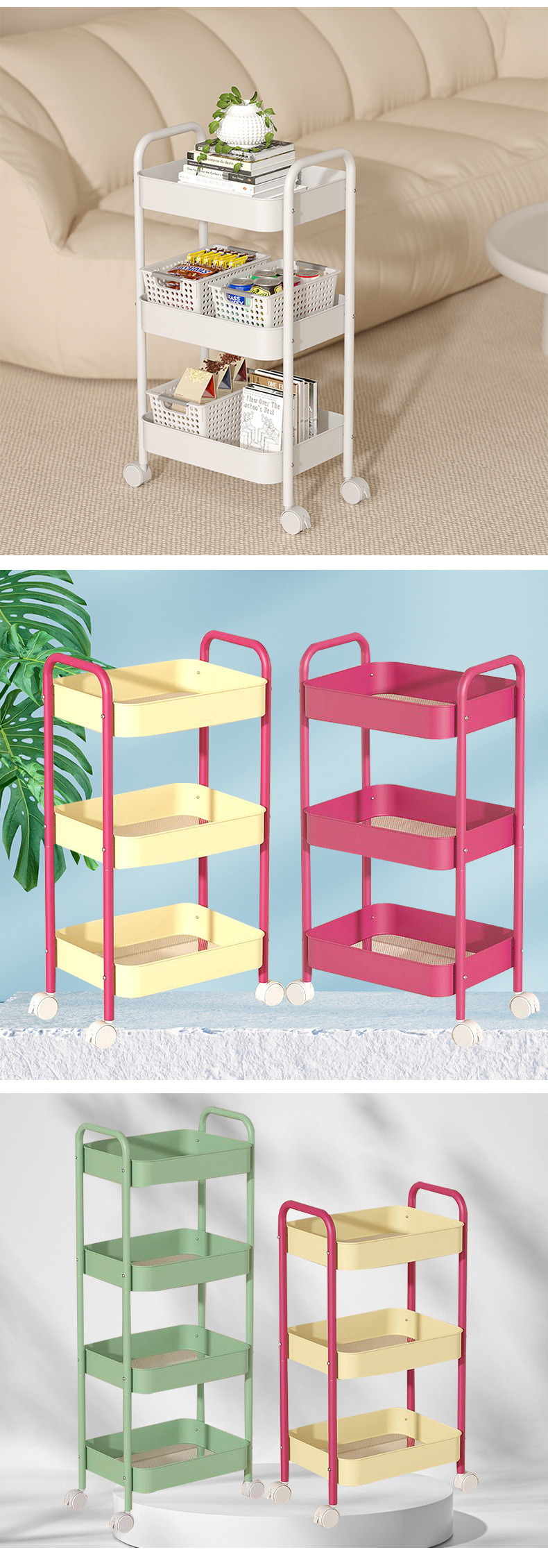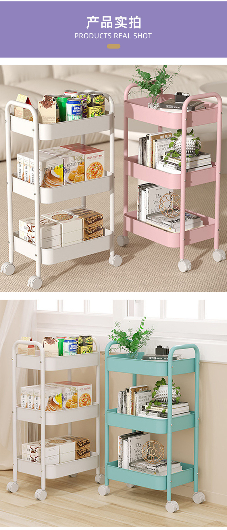고급스러운 패션 트롤리, 가정용 스낵 보관함, 기숙사 대용량 다층 이동식 유물 보관함스토어 가기