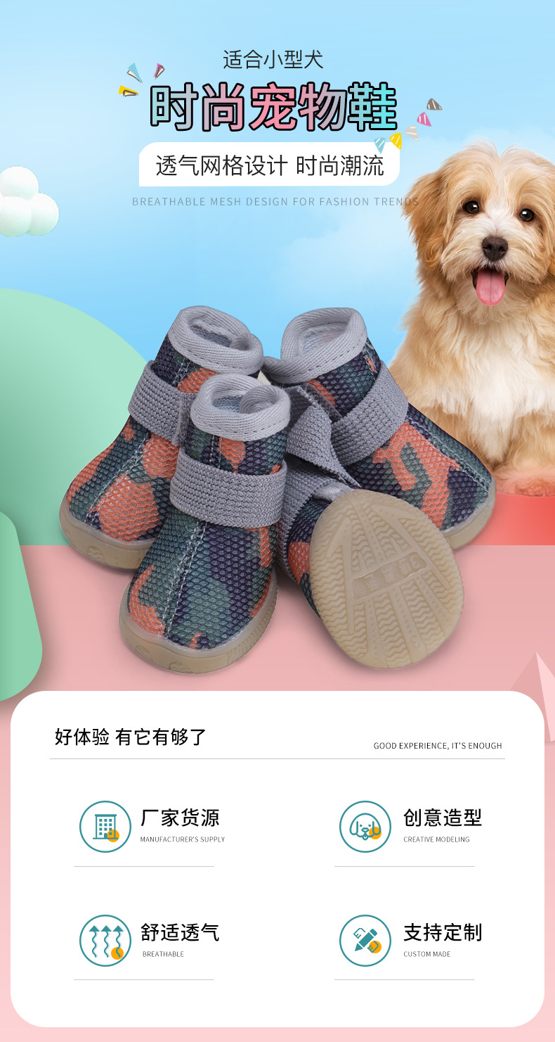 메쉬 통기성 애완 동물 신발 작은 개 외출 일반 신발 더러운 발 편안한 쇠고기 단독 패션 위장 패턴