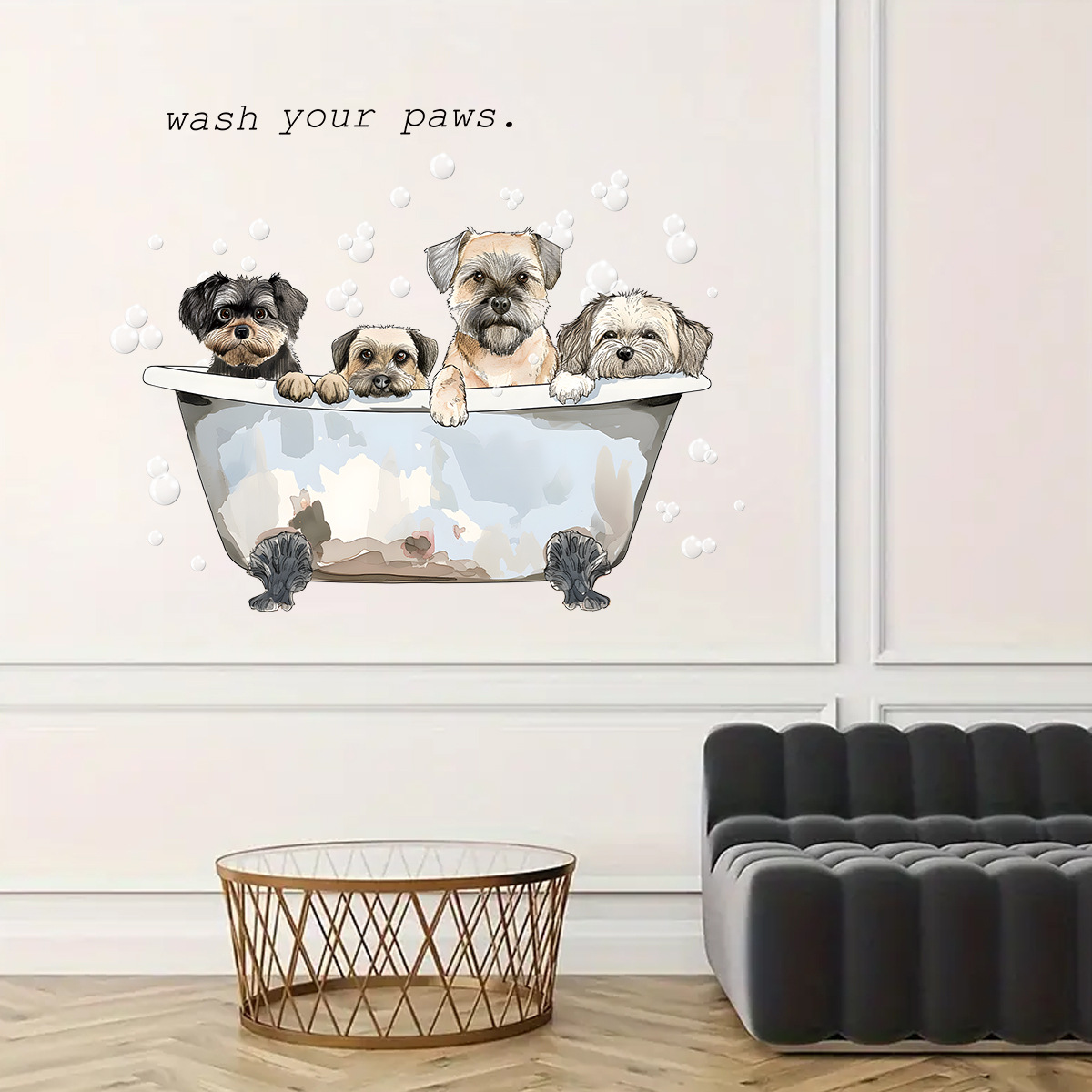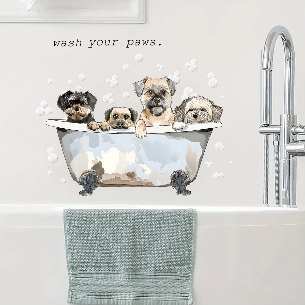 귀여운 강아지 거품 목욕 세면대 자체 접착 벽 스티커 욕실 욕실 세면대 장식 스티커 BR0584E스토어 가기