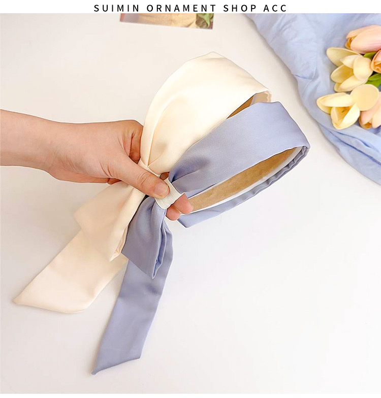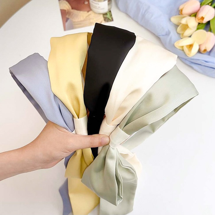 프렌치 새틴! 스트랩 통합 머리띠! 빈티지 틈새 디자인 밀크 그린 타이 헤어 밴드 디자인 센스 헤드웨어