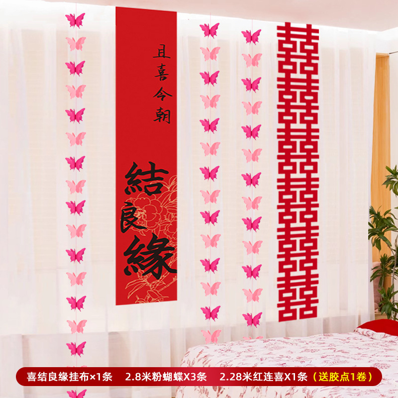 웨딩 웨딩 룸 장식 축제 장식 웨딩 캐릭터 그리기 커튼 배너 매달려 헝겊 거실 침실 해피 캐릭터 세트