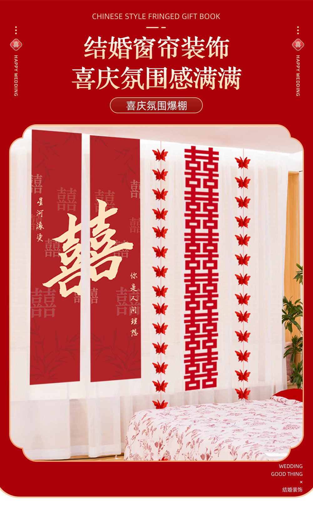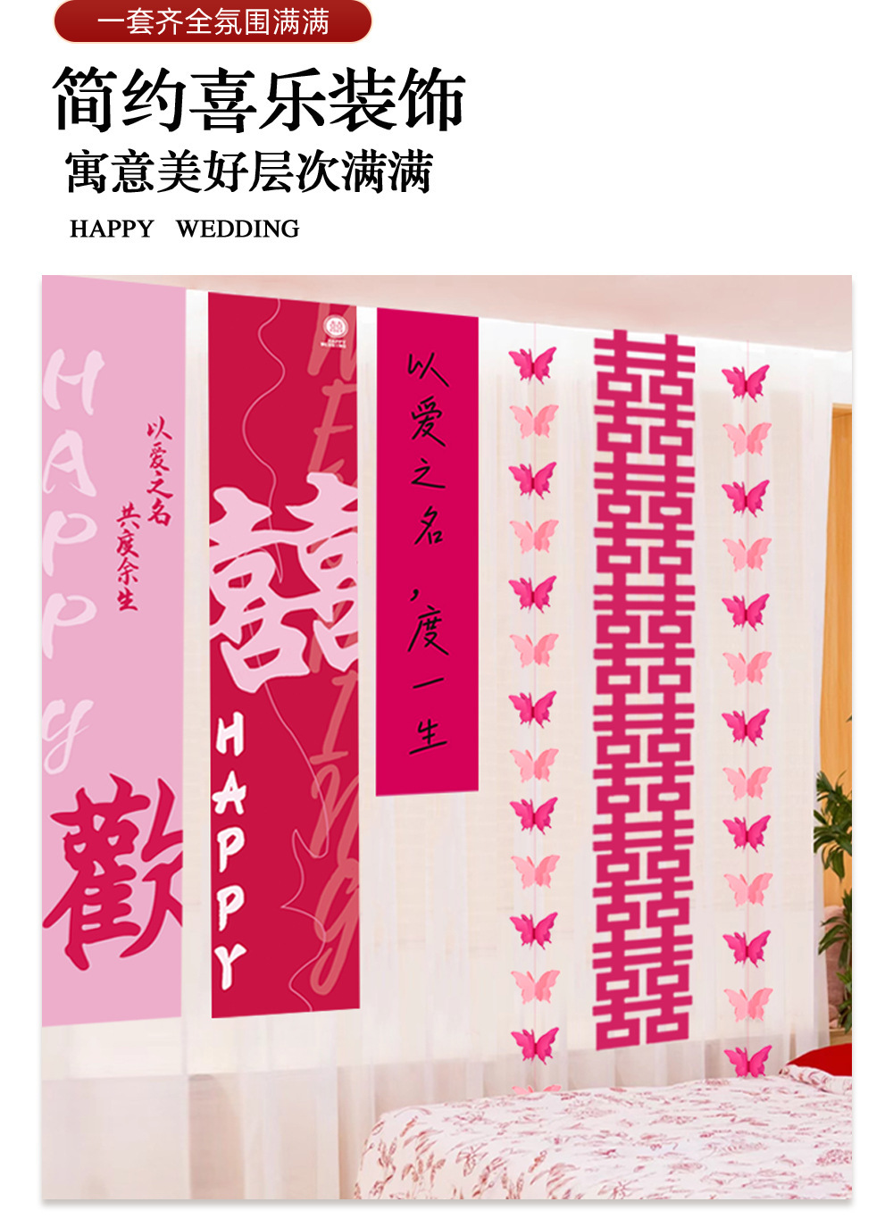 웨딩 웨딩 룸 장식 축제 장식 웨딩 캐릭터 그리기 커튼 배너 매달려 헝겊 거실 침실 해피 캐릭터 세트스토어 가기