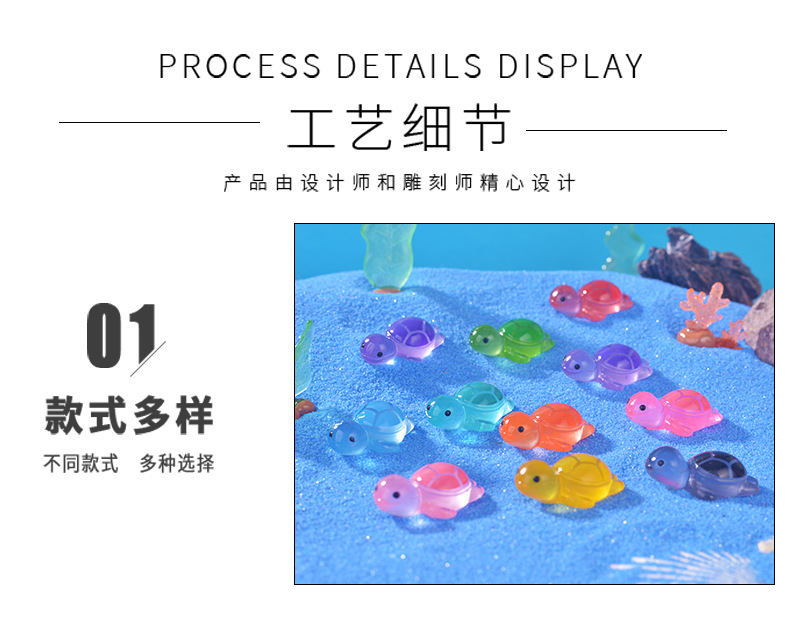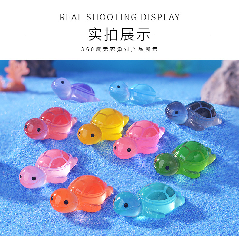인터넷 빨간 만화 거북 시리즈 마이크로 풍경 물고기 탱크 조경 작은 장식품 귀여운 색상 작은 거북이 빛나는 장식품