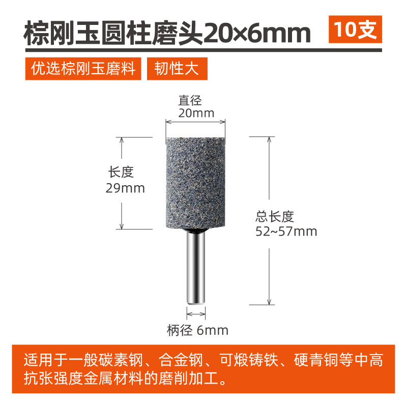 작은 전기 연삭 기계를위한 다크 브라운 커런덤 연삭 휠 연삭 헤드 금속 연삭 전기 드릴 원통형 주철 연마 전기 연삭 헤드