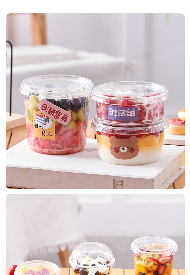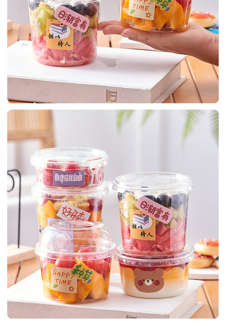 과일 컵 일회용 과일 절단 상자 상업 투명 포장 상자 그물 붉은 과일 절단 컵 수박 포장 상자 샐러드 상자스토어 가기
