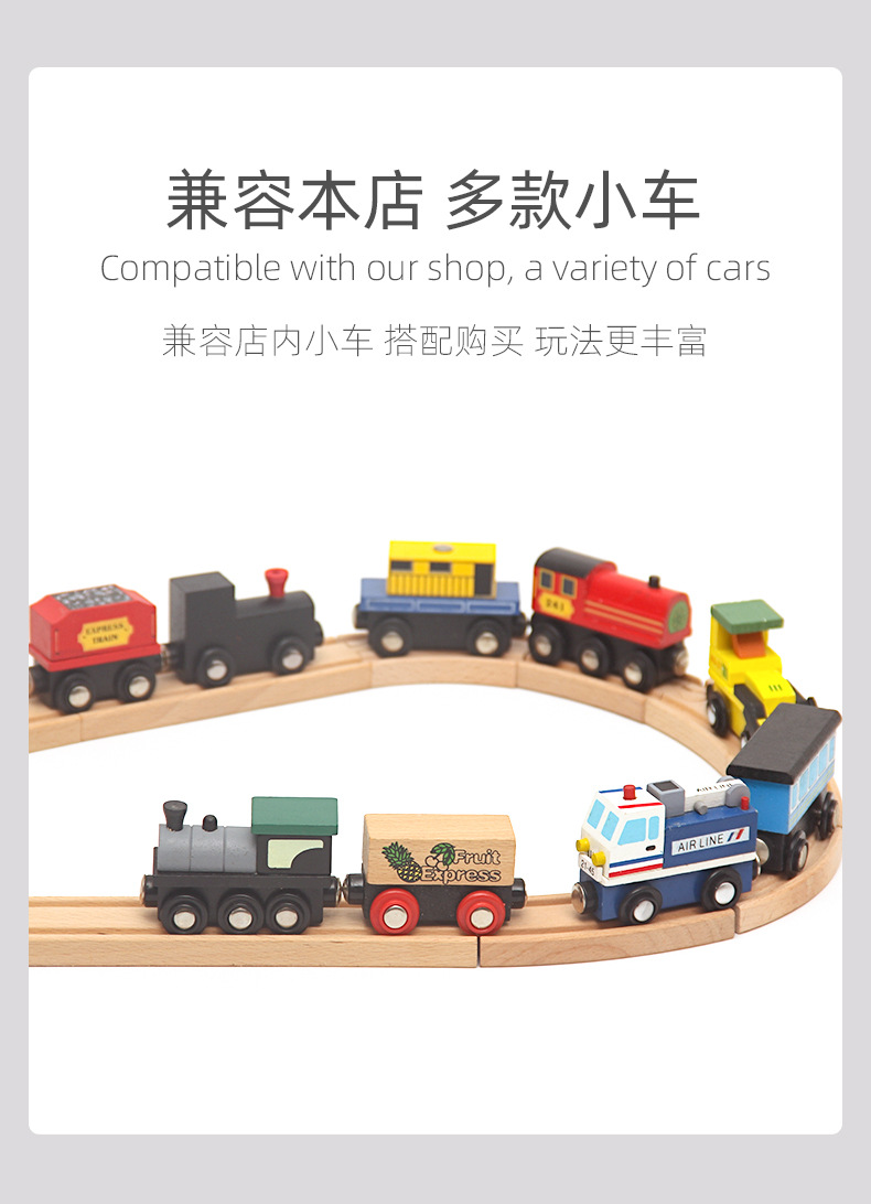 나무 레일 자동차 전기 기차 트랙 나무 작은 기차 단단한 나무 장난감 패키지 트랙은 조각과 일치 할 수 있습니다